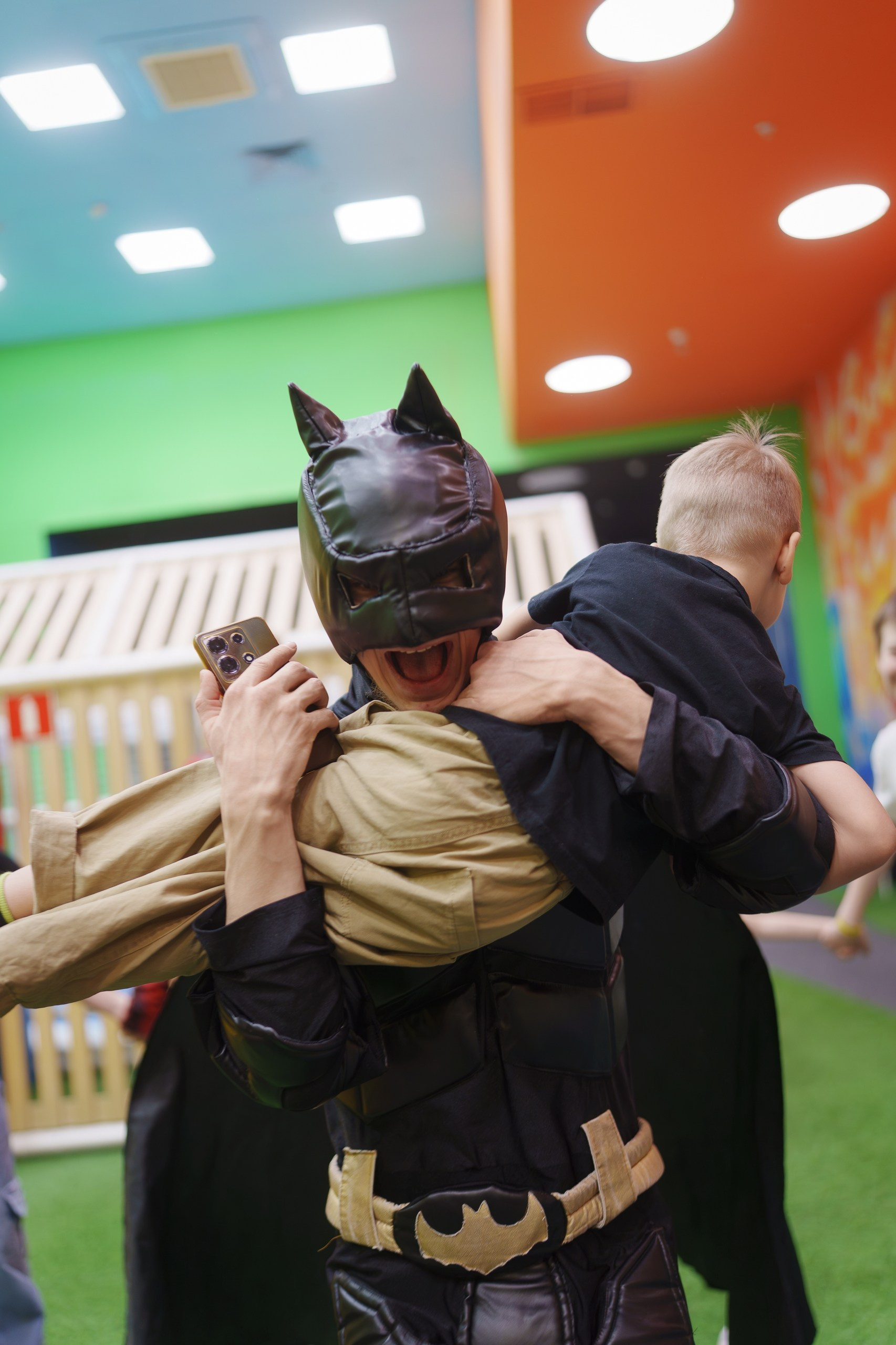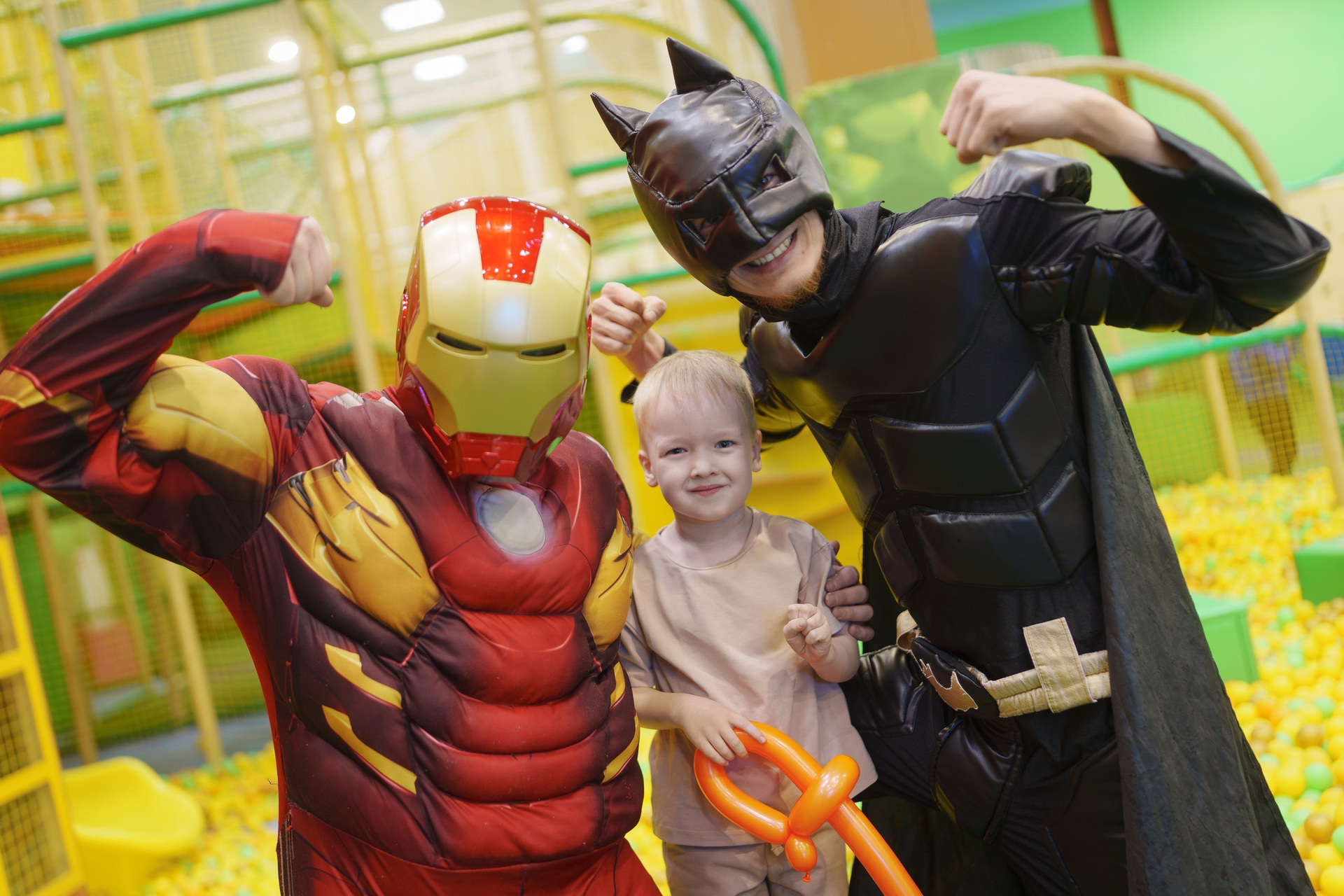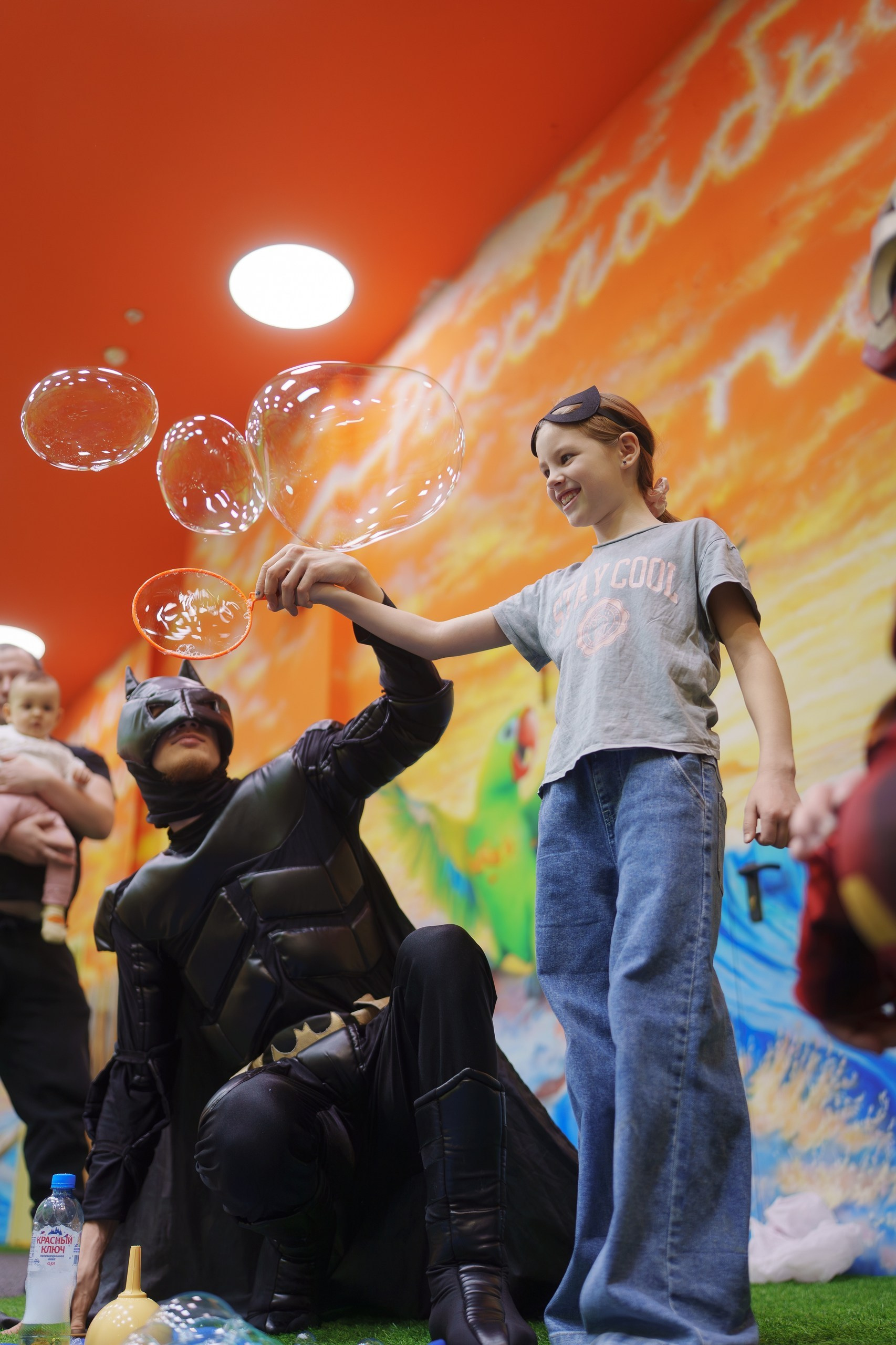 Праздник был организован очень активно. Работали аниматоры в образах Человека-паука и Бэтмена, которые постоянно держали детей в движении — конкурсы, задания, игры, командные активности. Плюс была отдельная программа с химическими фокусами, которая вызвала настоящий восторг у детей.