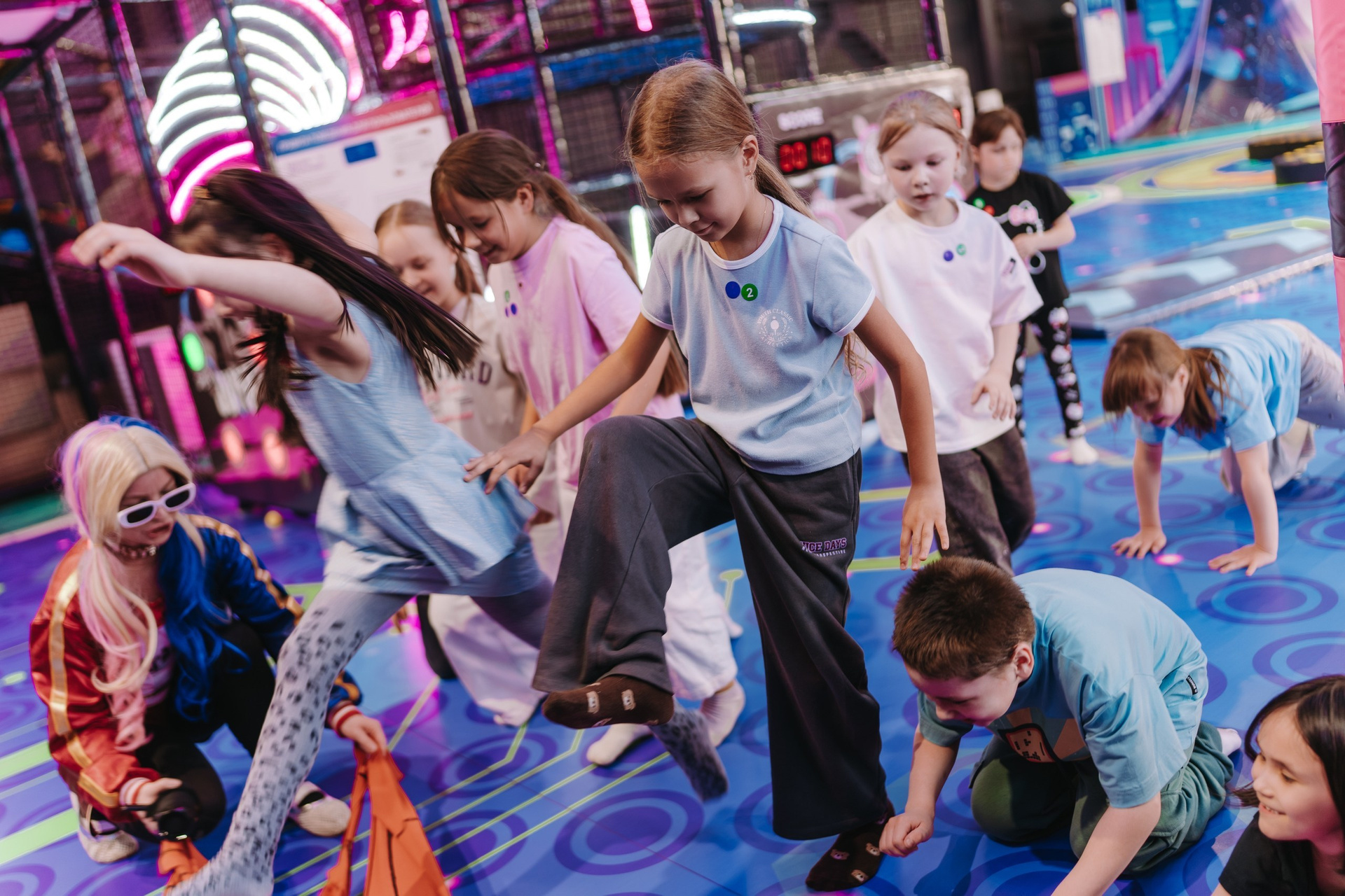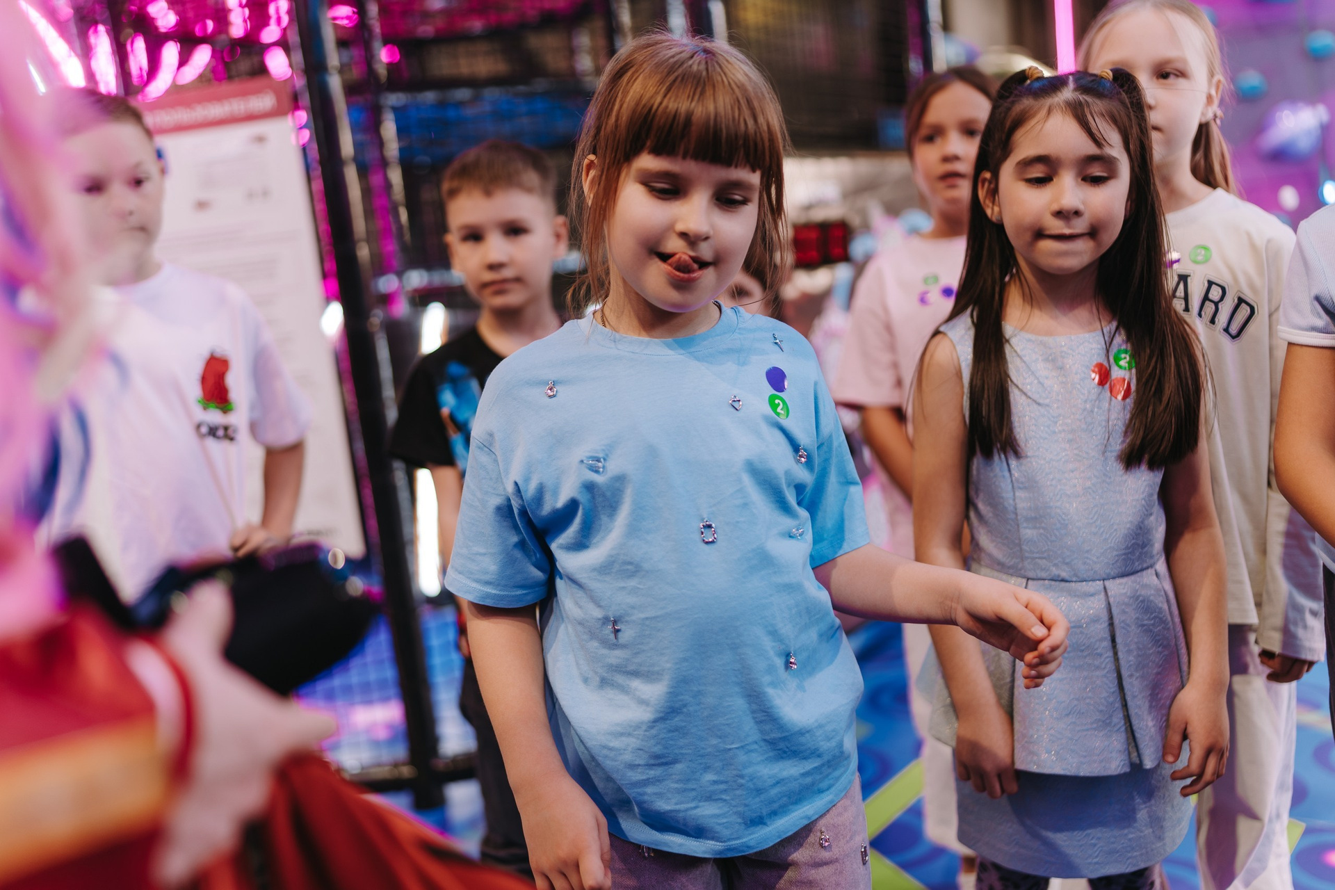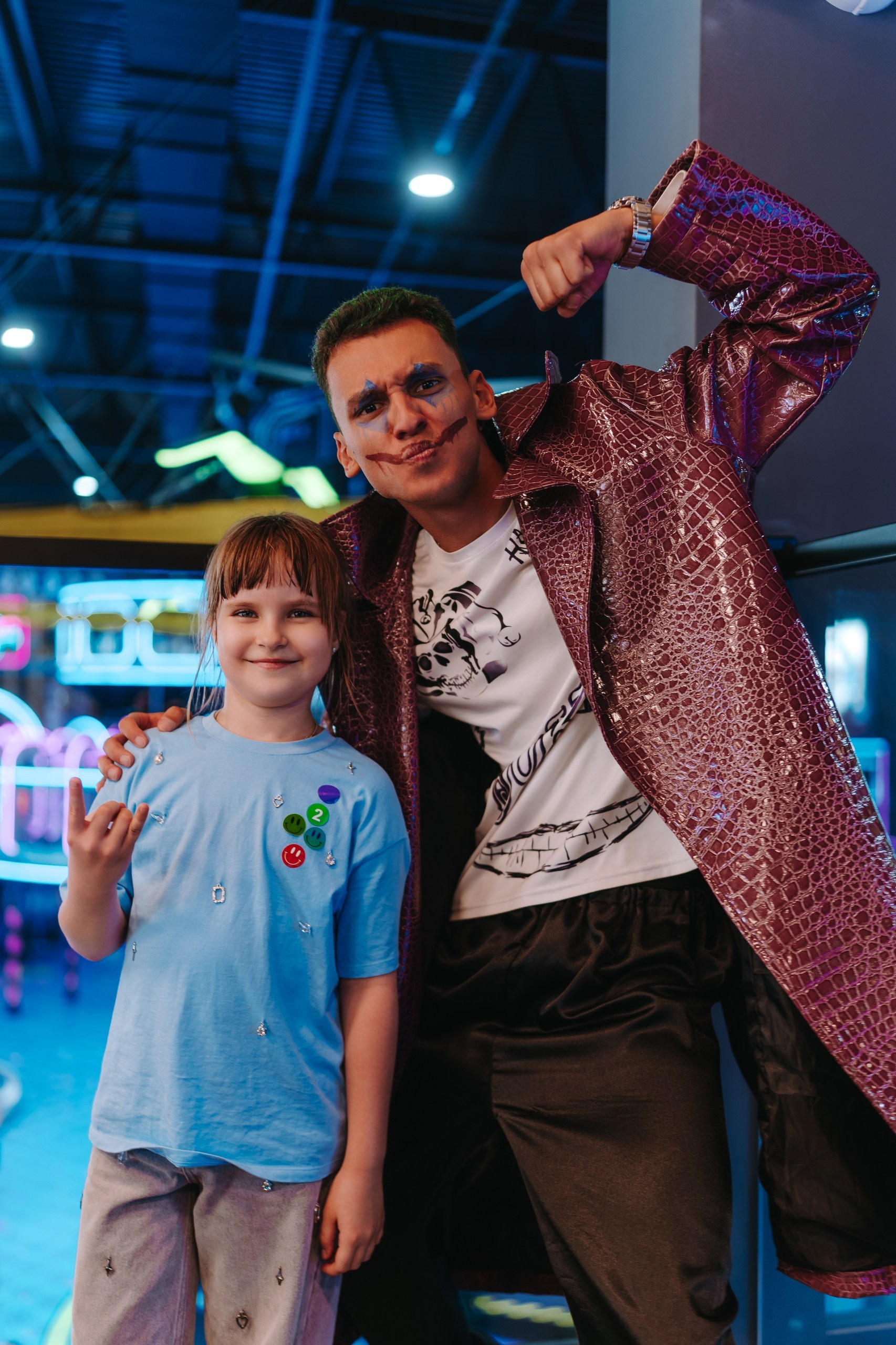 Дальше подключается анимация — в этот раз были персонажи Харли Квинн из вселенной DC, и вся основная съёмка переходит в репортажный формат. Я снимаю не «программу», а эмоции детей: смех, реакции, игры, живое общение.