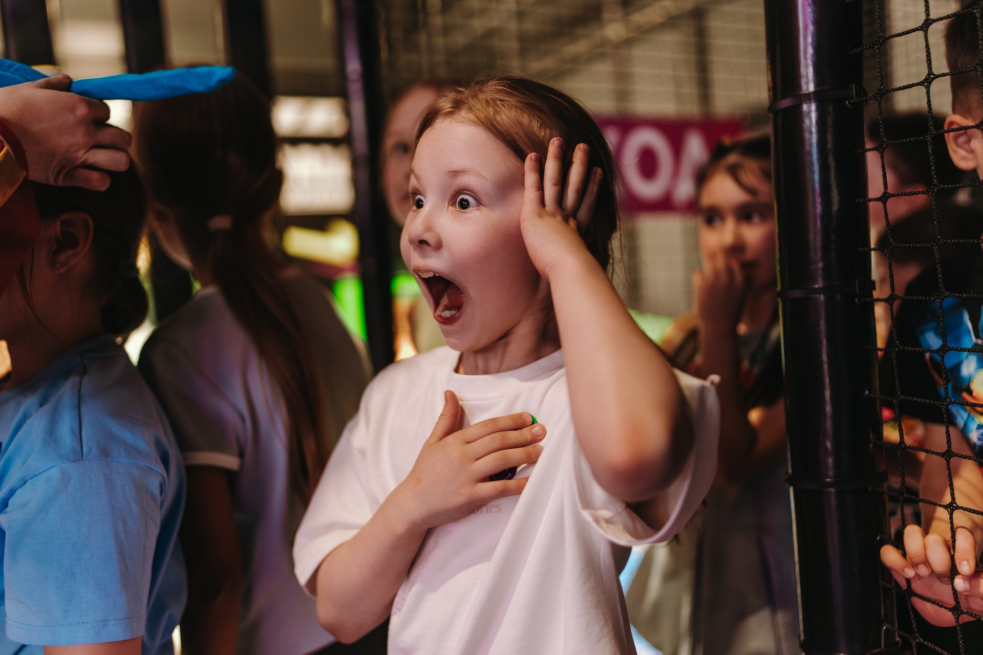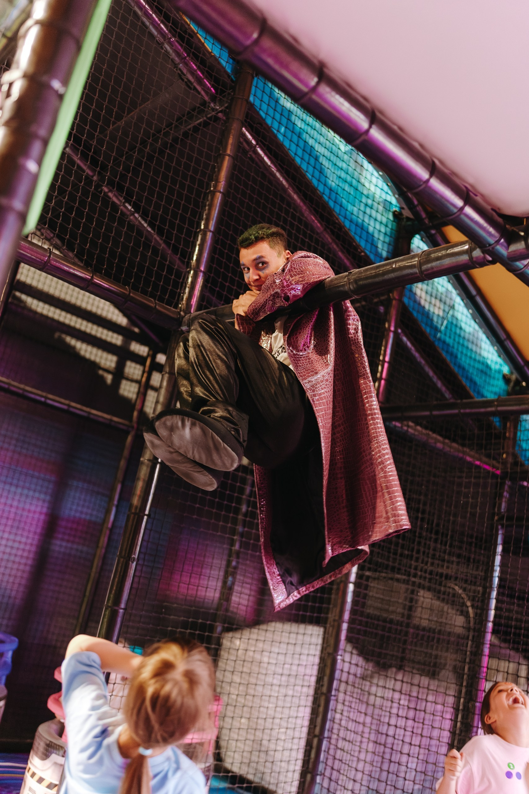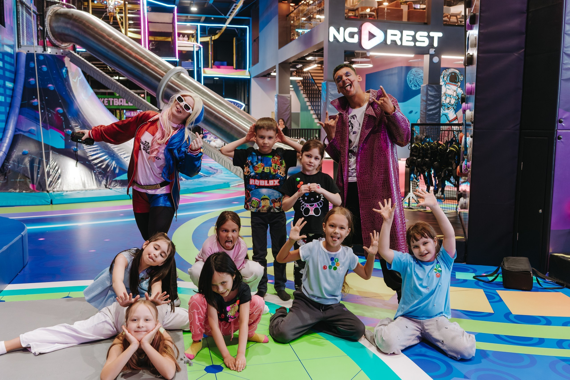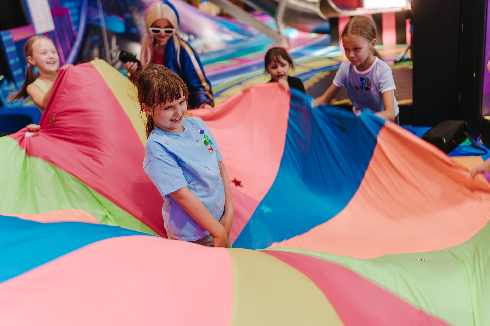 Дальше подключается анимация — в этот раз были персонажи Харли Квинн из вселенной DC, и вся основная съёмка переходит в репортажный формат. Я снимаю не «программу», а эмоции детей: смех, реакции, игры, живое общение.