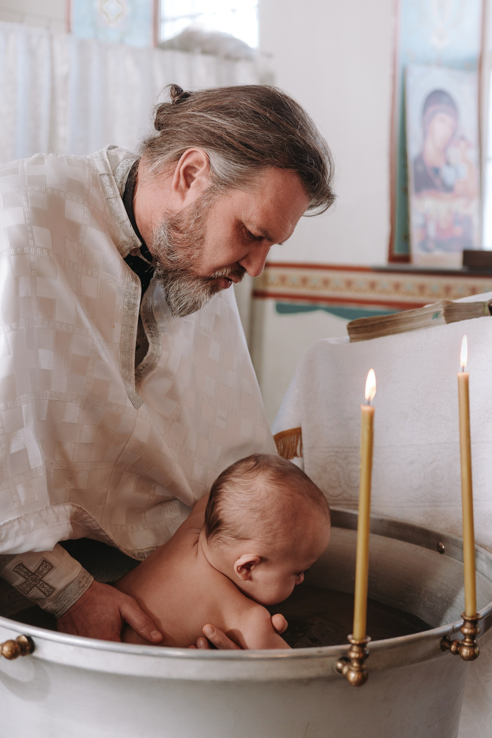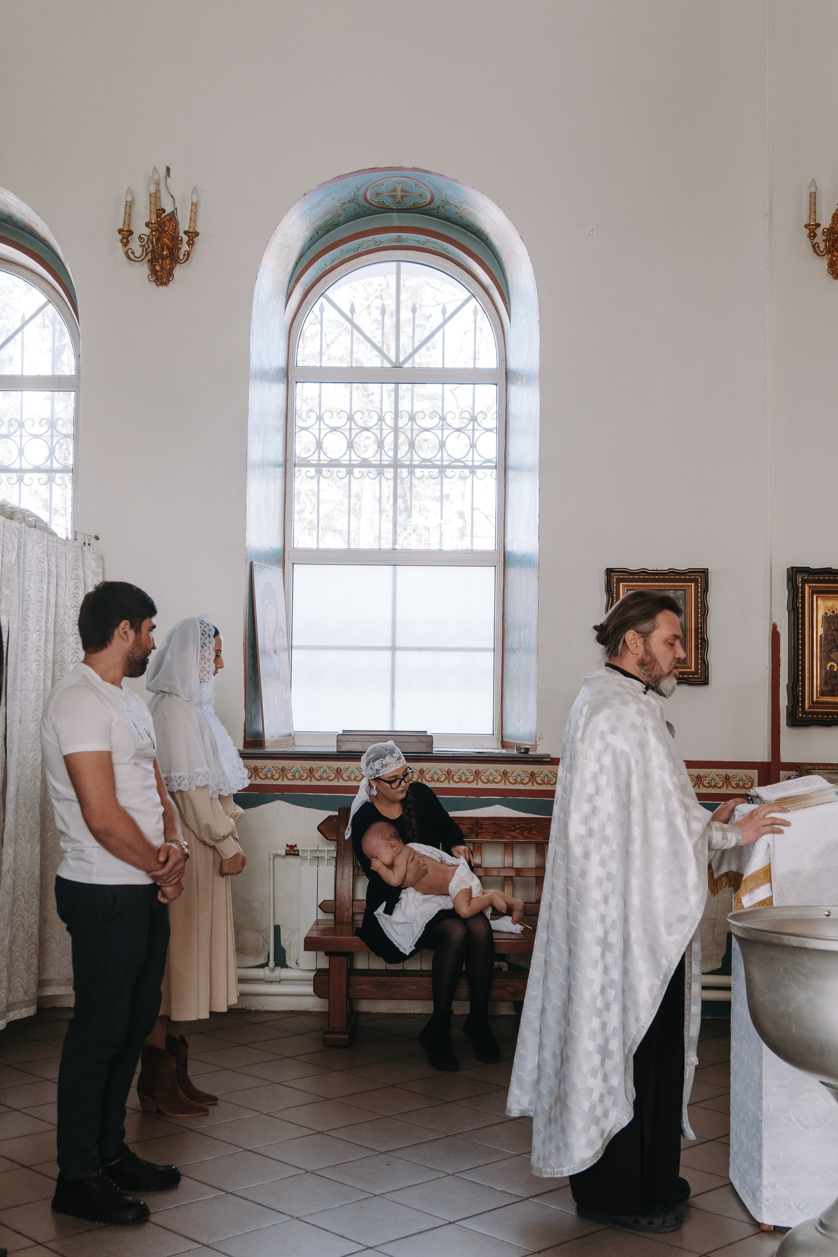Я снимаю с 2008 года и регулярно работаю с фотосъёмкой крещения в Уфе, поэтому понимаю все нюансы. У меня достаточно техники, чтобы работать в условиях слабого освещения без потери качества — фотографии получаются чистыми, светлыми и резкими, даже в сложных условиях храма.