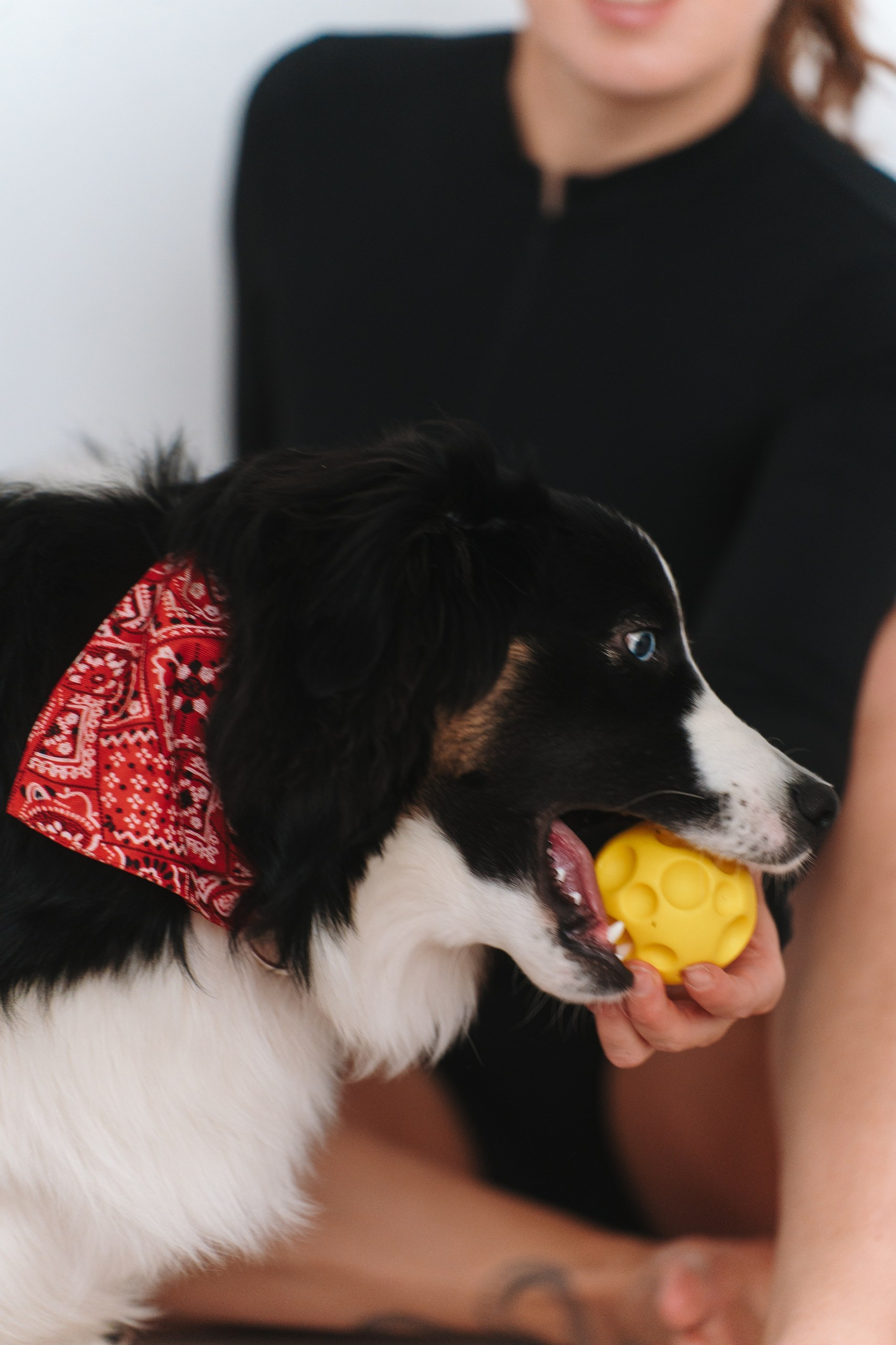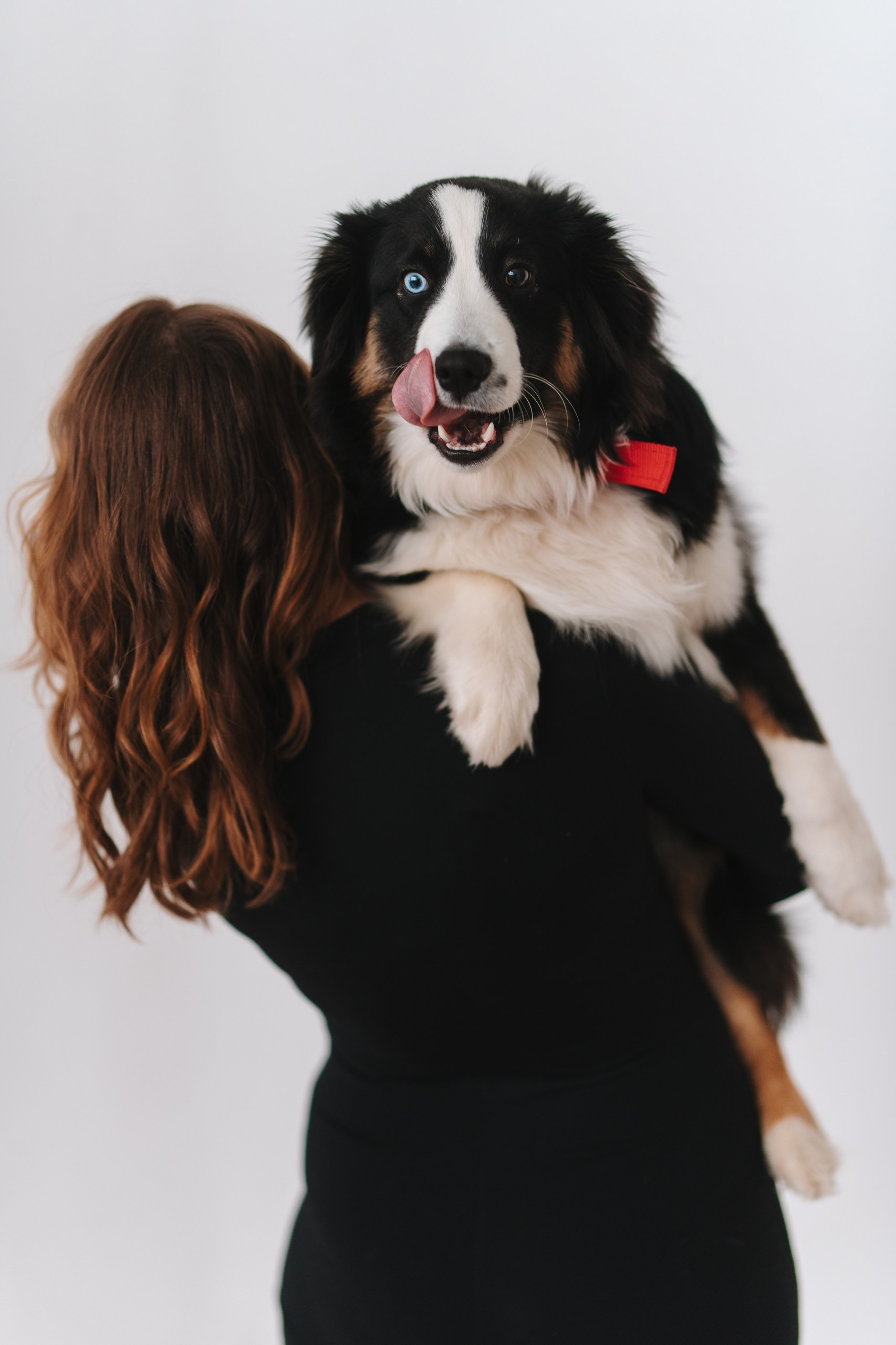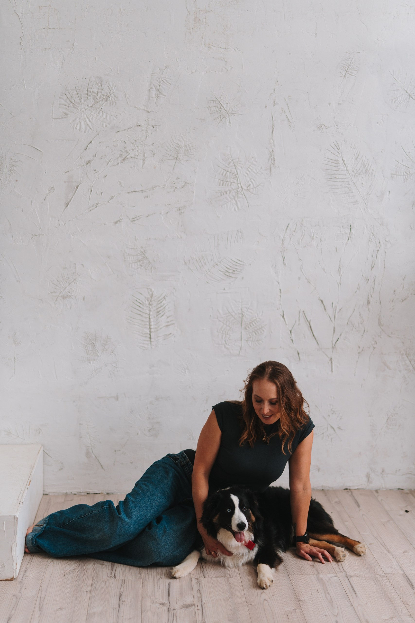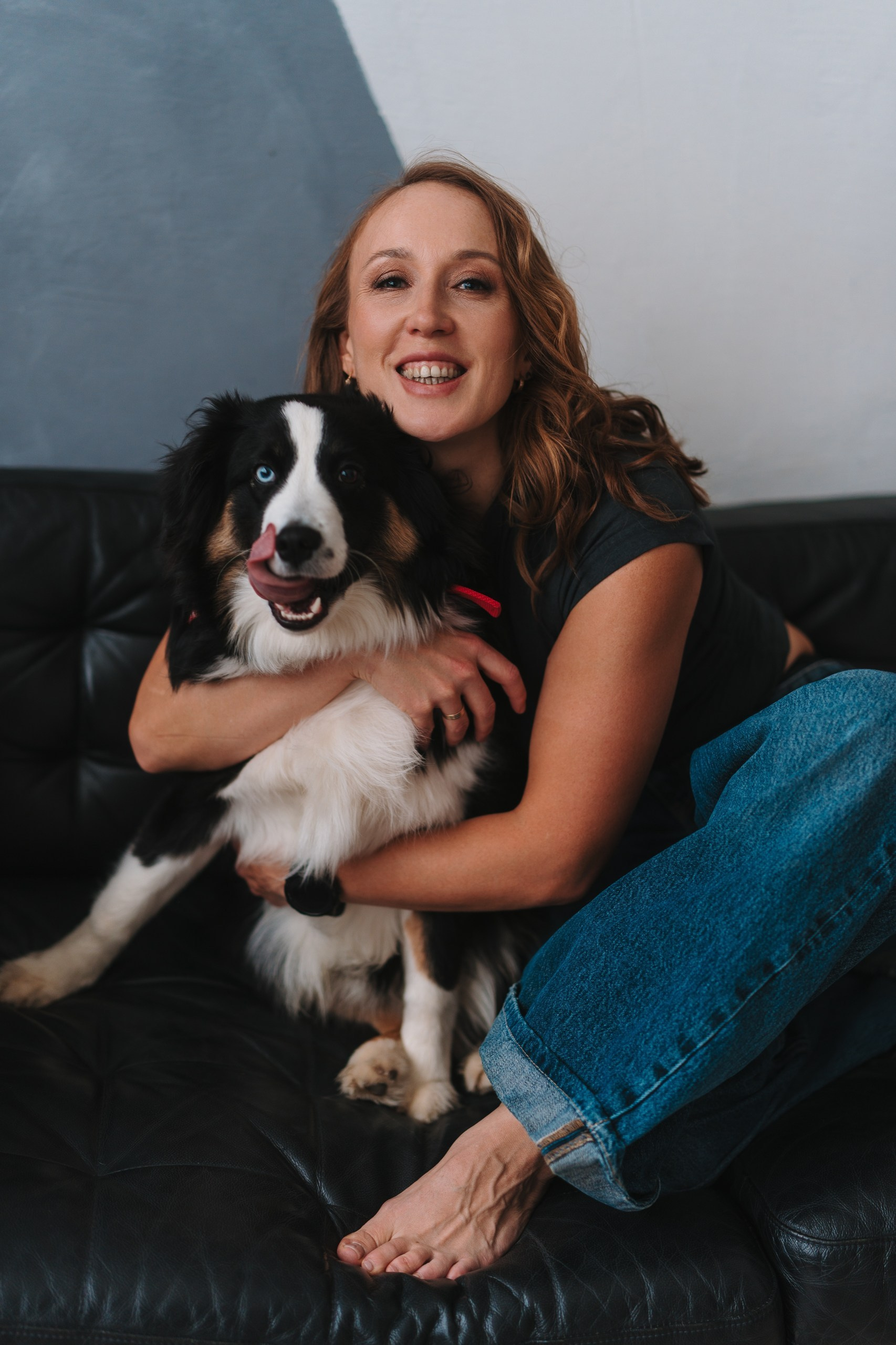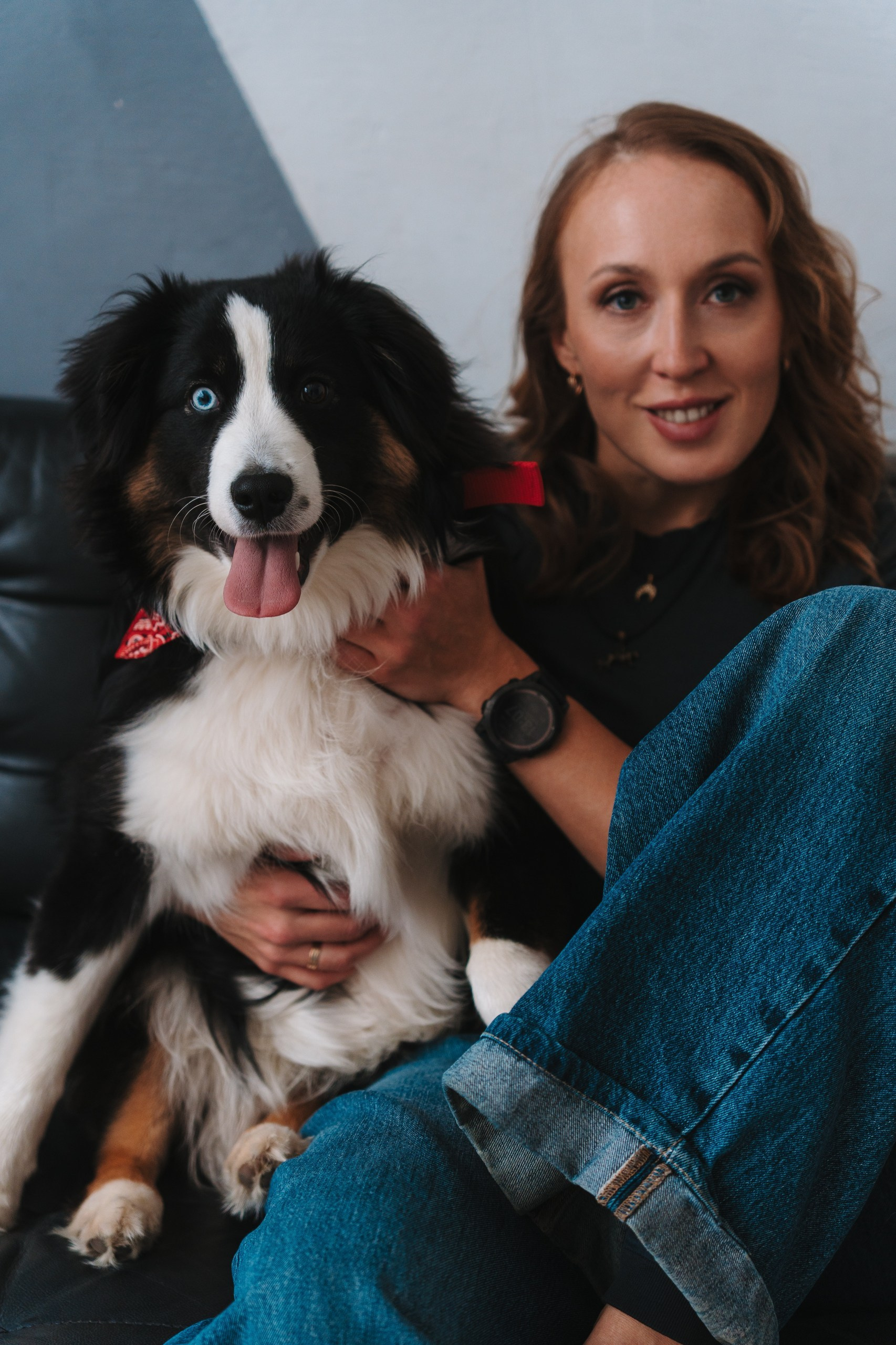Её собаку зовут Барни — очень харизматичный и спокойный пёс, который отлично чувствовал себя перед камерой. Снимали в фотостудии Фотобар — светлое пространство с хорошим естественным светом, которое идеально подходит для фотосессий с животными в Уфе.