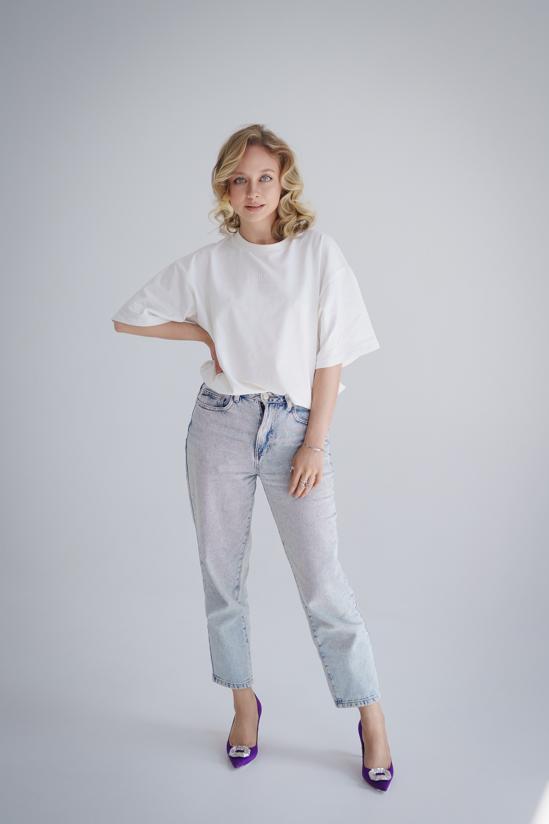 Съёмку проводили в фотостудии Бланка, на проспекте Салавата Юлаева. Задача была чёткая — контент-съёмка одежды для бренда: показать сами футболки, посадку, принты, фактуру и настроение коллекции. Никакой перегруженности, ставка на свет, чистый фон и живые кадры. Именно так должен выглядеть визуал для современной fashion-марки.
