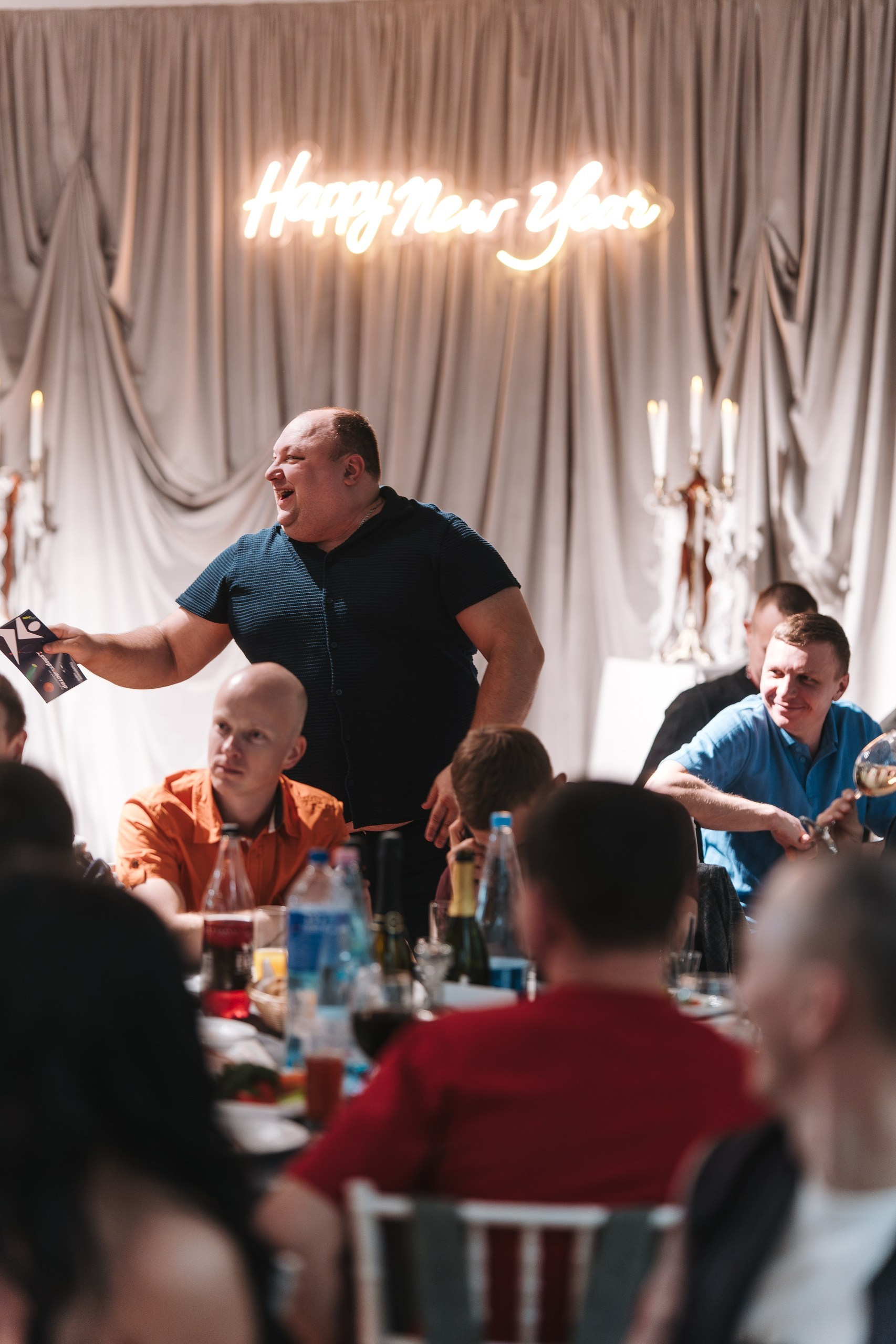 Ведущим был Булат Петров — человек из телевидения, с большим опытом, спокойной подачей и отличным чувством аудитории. Для фотографа это прям подарок: когда ведущий не перетягивает внимание на себя, а аккуратно держит зал, оставляя пространство для эмоций гостей. Я спокойно работал в репортажном режиме — фотозона, общие планы, реакции, детали, живые разговоры за столами. Всё как я люблю и как должен выглядеть нормальный корпоративный репортаж.