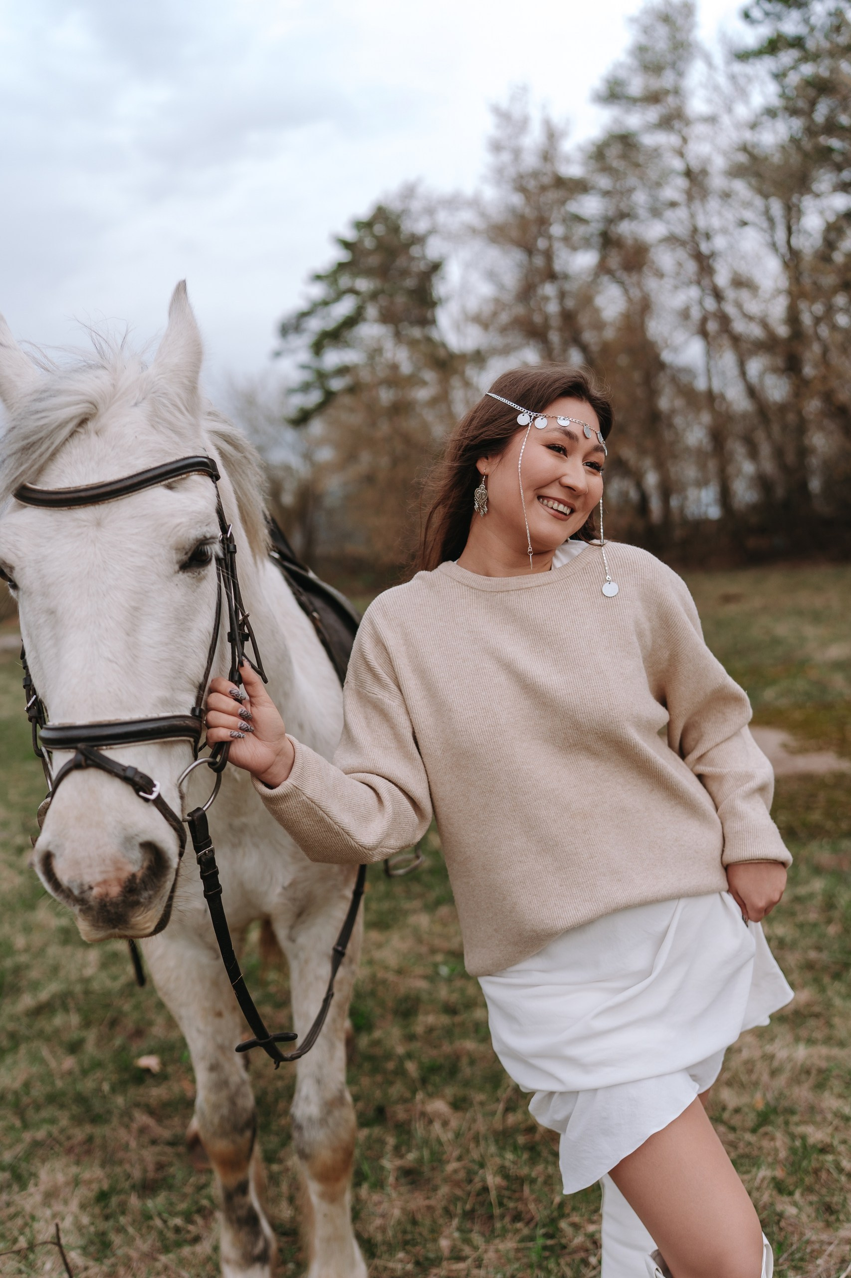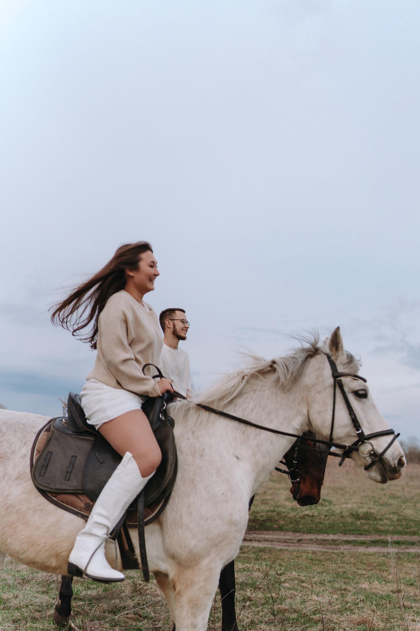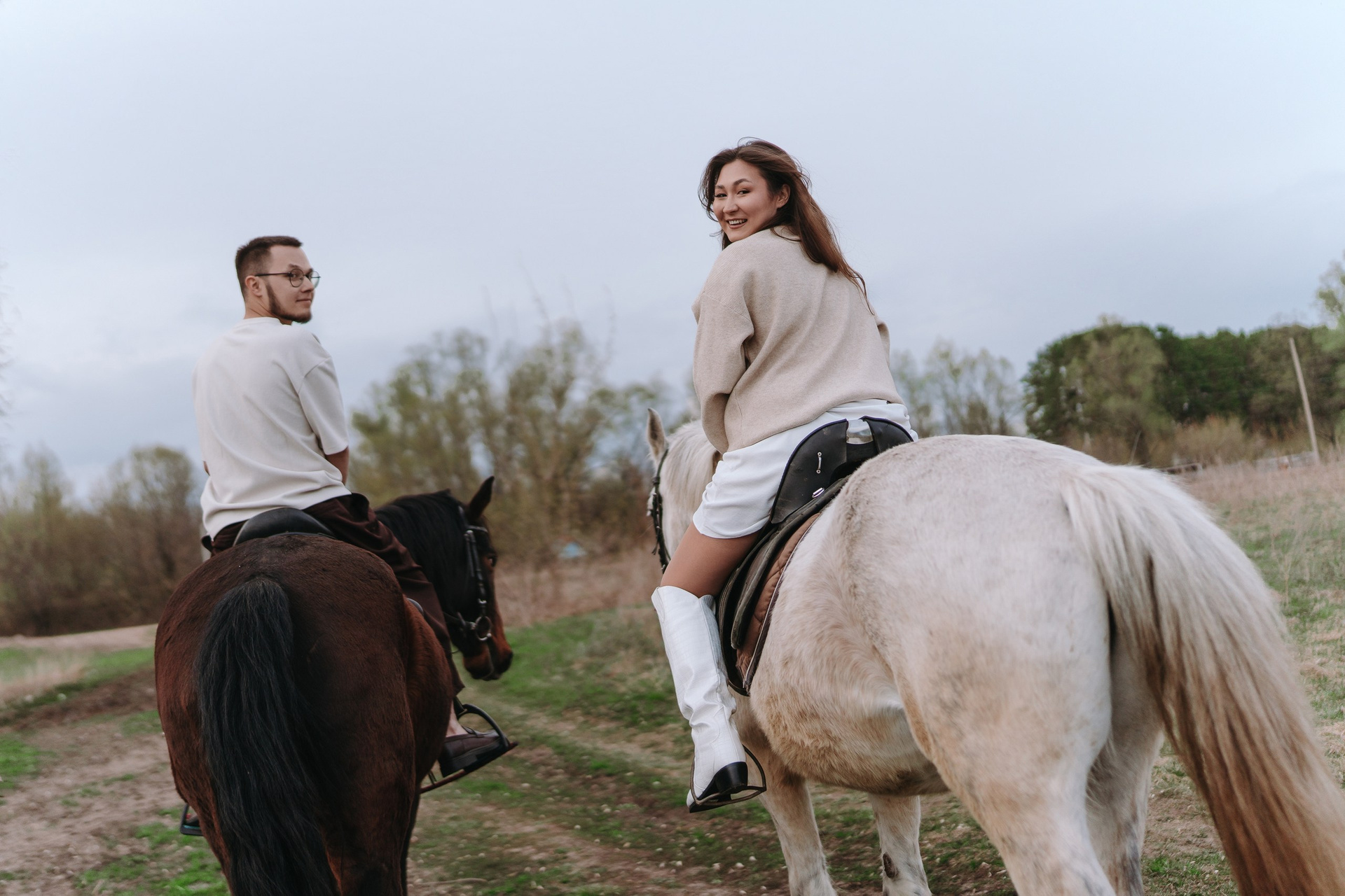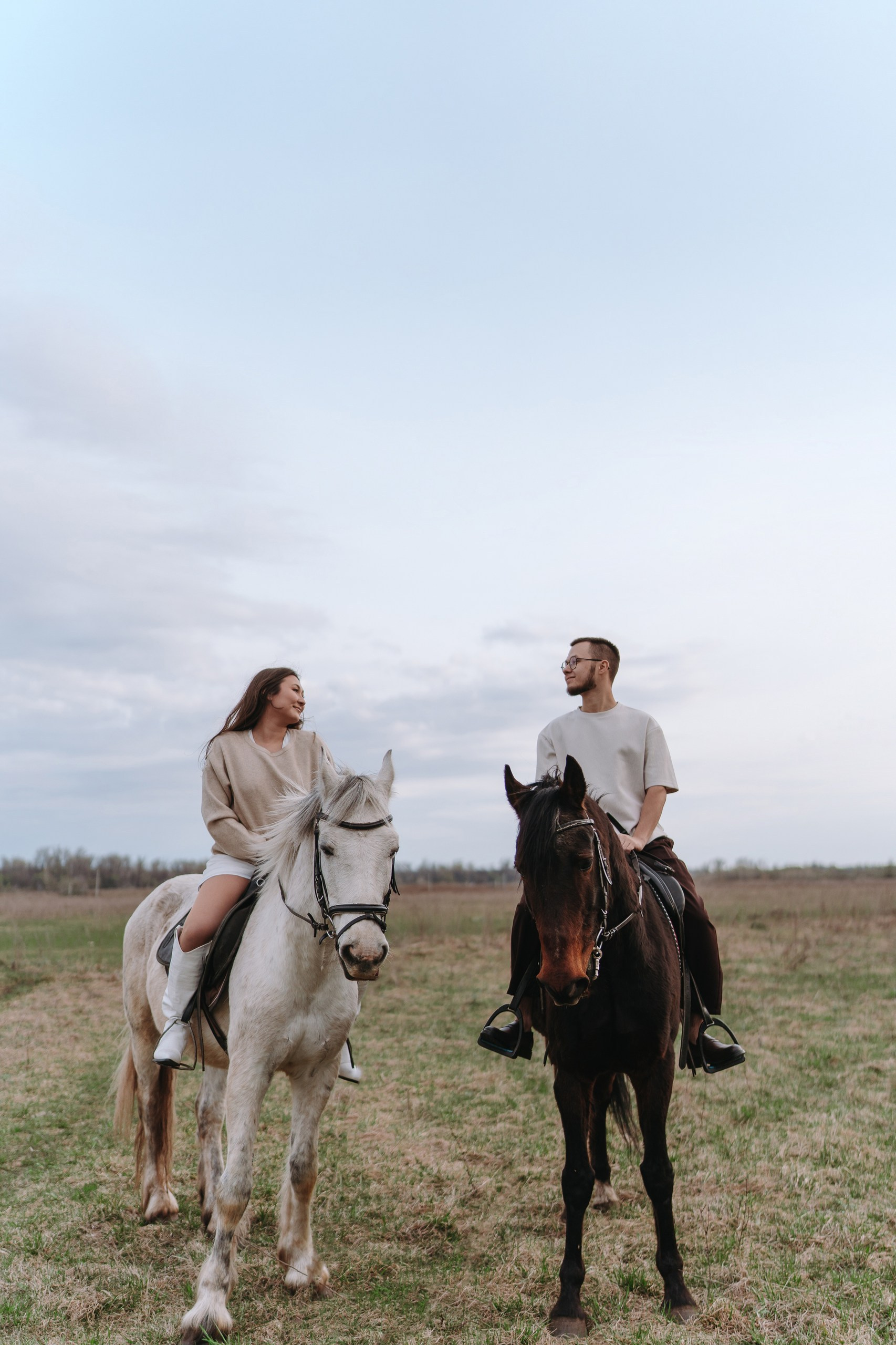 Эта лавстори в Уфе как раз такая — почти +5 градусов, апрель, ветер, и мы едем в Миловский конный клуб снимать предсвадебную фотосессию.