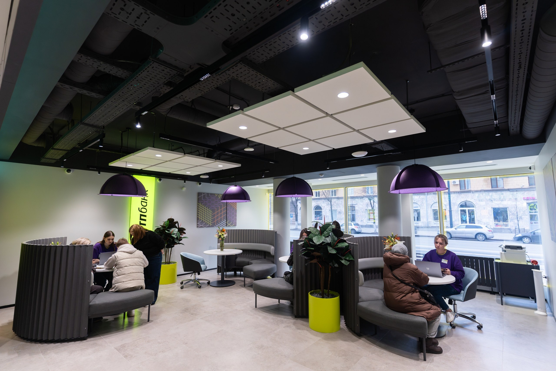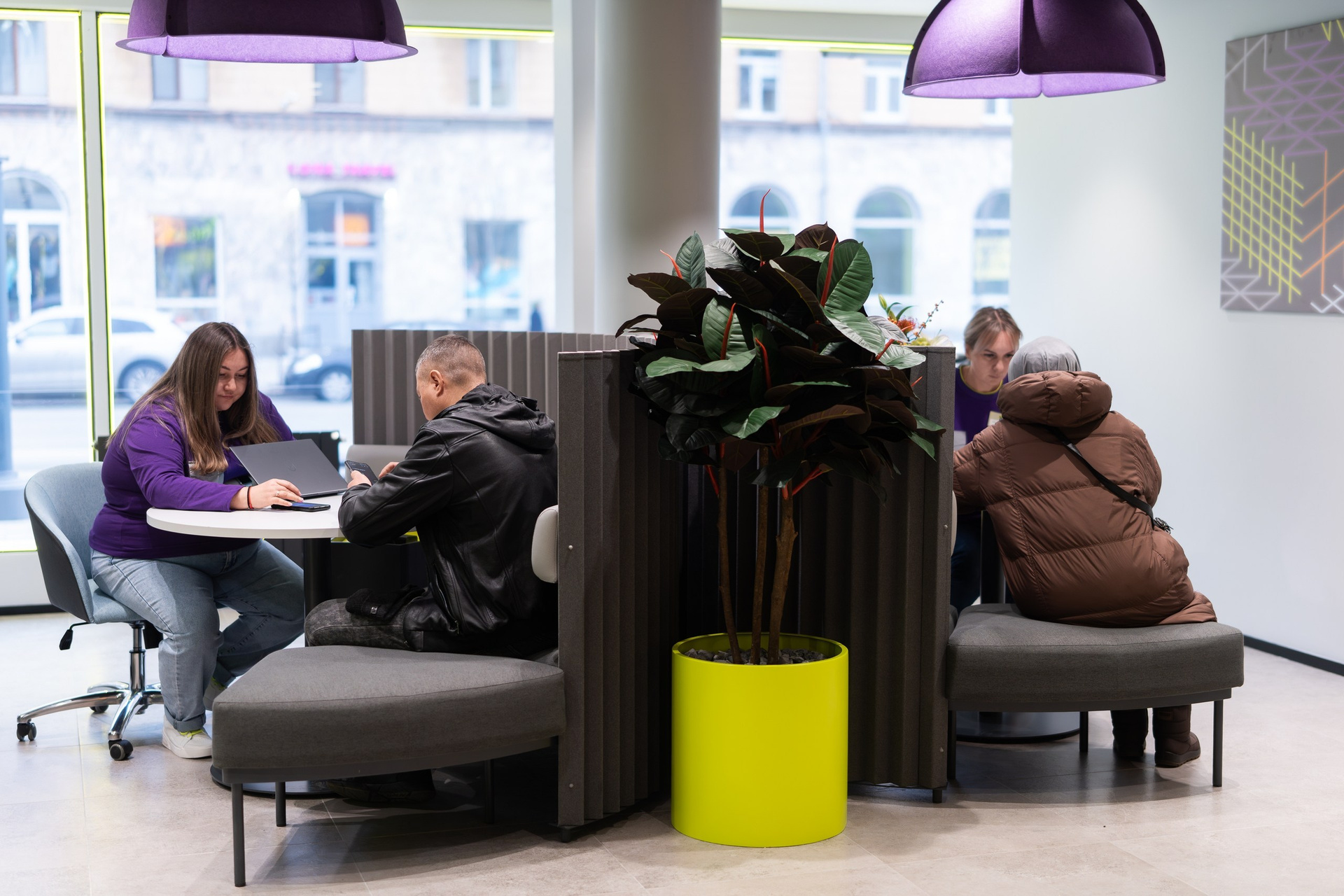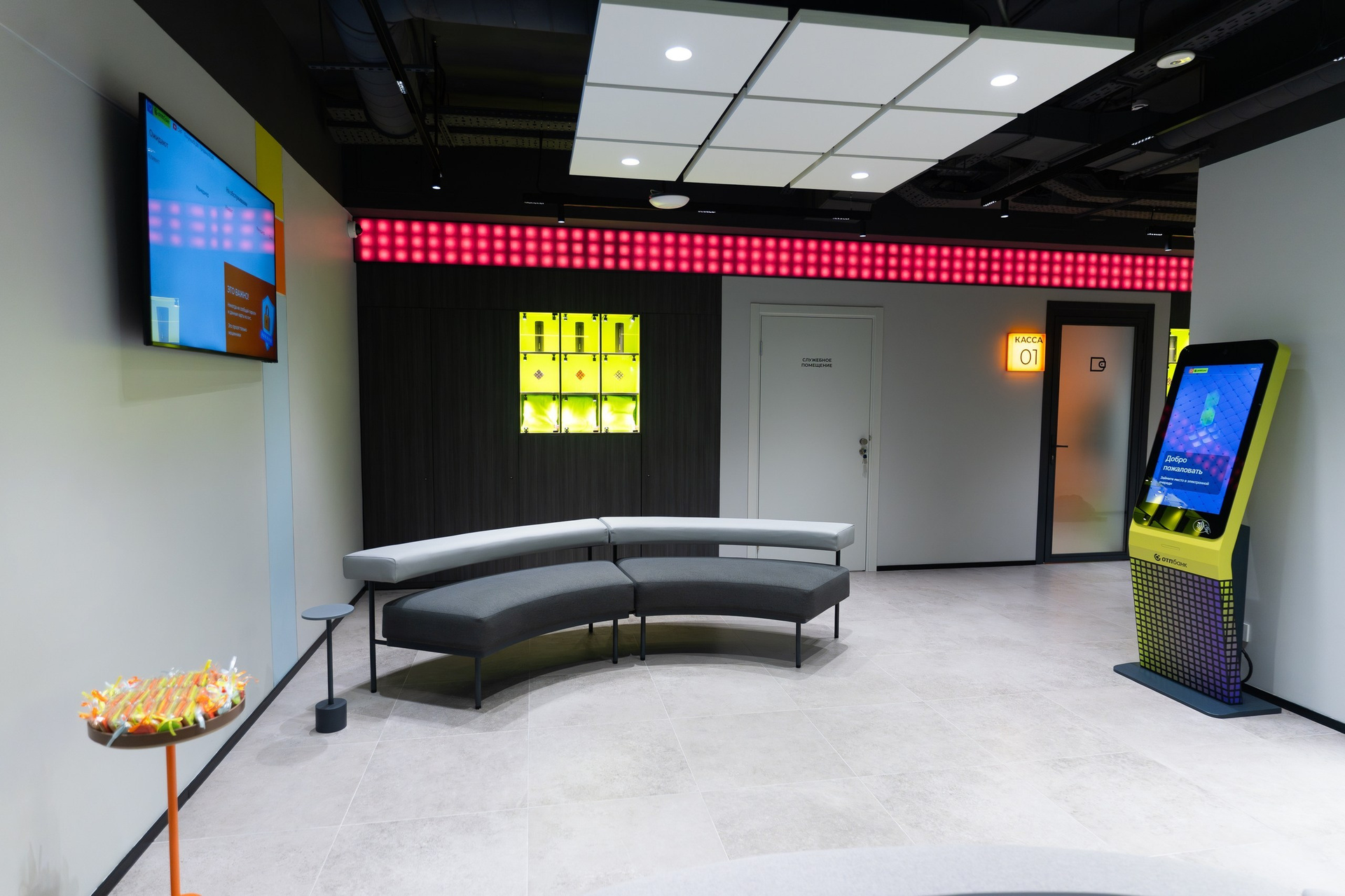 Первому клиенту (это была девушка-бизнес-клиент) вручили подарочный рюкзак — я тоже это снял. Потом — репортажная съёмка: как заходят клиенты, как их обслуживают, как работает система, движение в зале. В банкоматной зоне случился казус — не работал один из аппаратов, поэтому я снял эту зону позже, когда всё настроили.