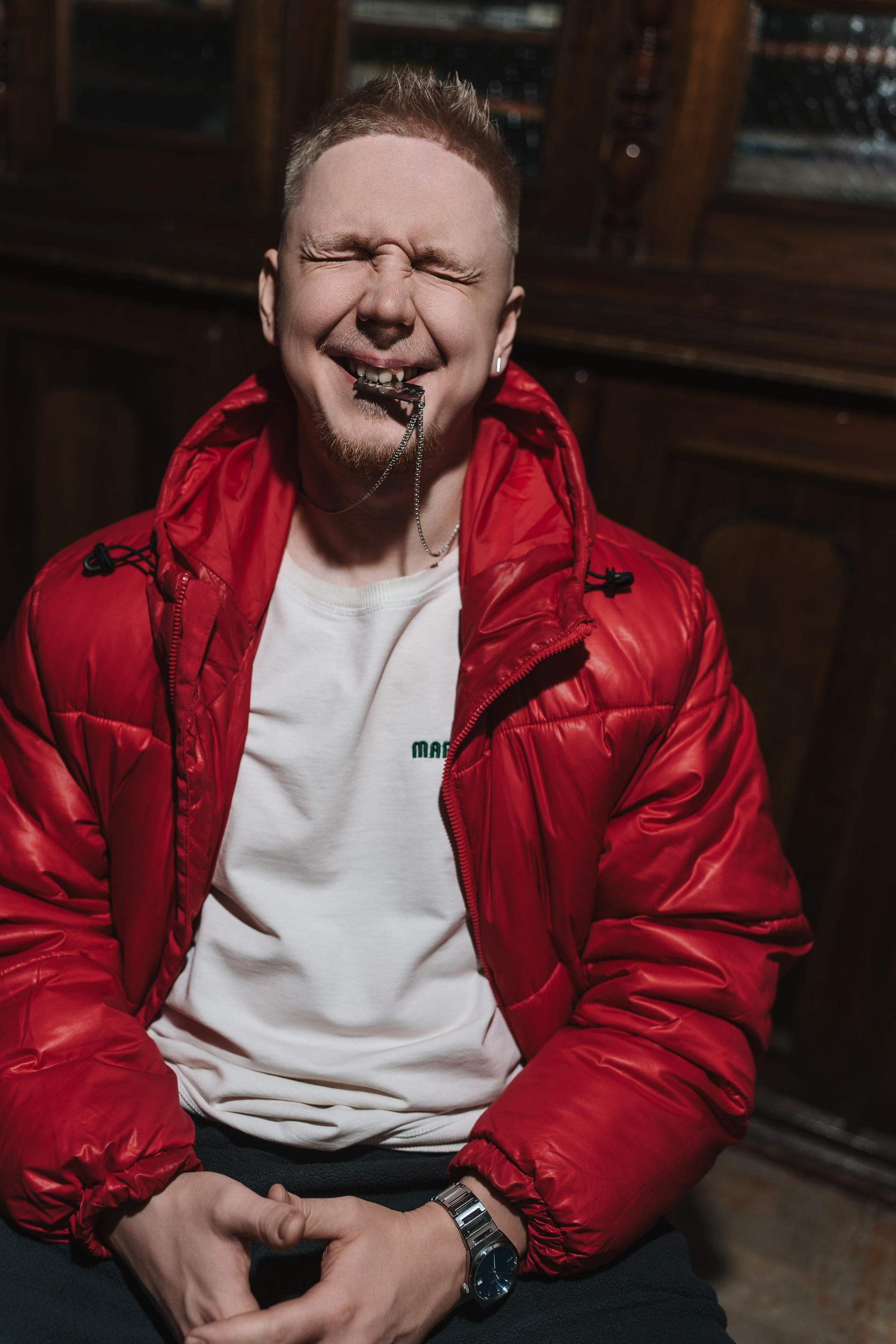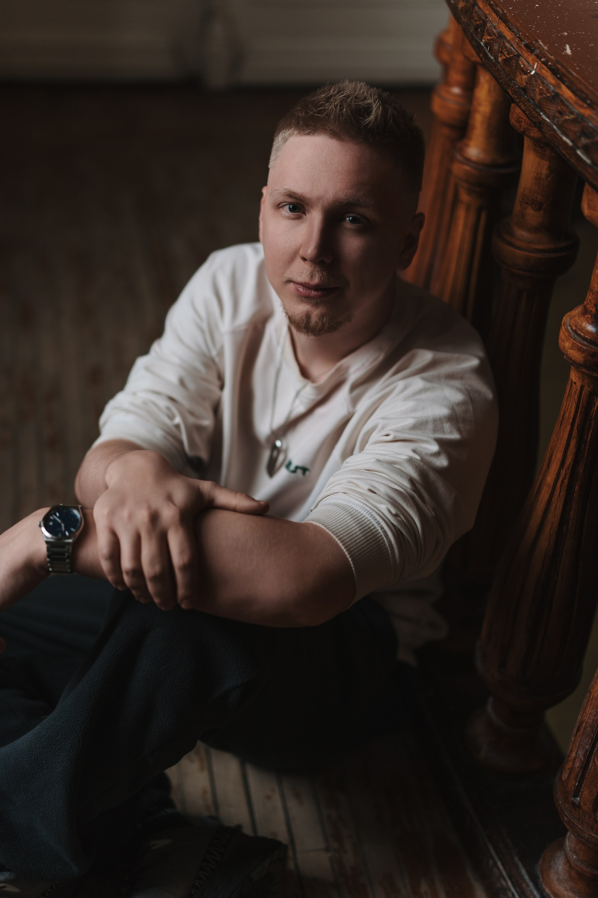 Съёмку провели за два часа в двух локациях. Первая — Центральная библиотека в Уфе: пространство с интересной архитектурой, где получилось сыграть на контрасте старинного и современного, интеллекта и драйва. Вторая локация — студия Obscura, где сделали упор на новогоднее настроение. Максим был в разных образах, а я — в режиме «минимум слов, максимум дела»: ставил свет, ловил момент, давал чёткие, но простые подсказки.