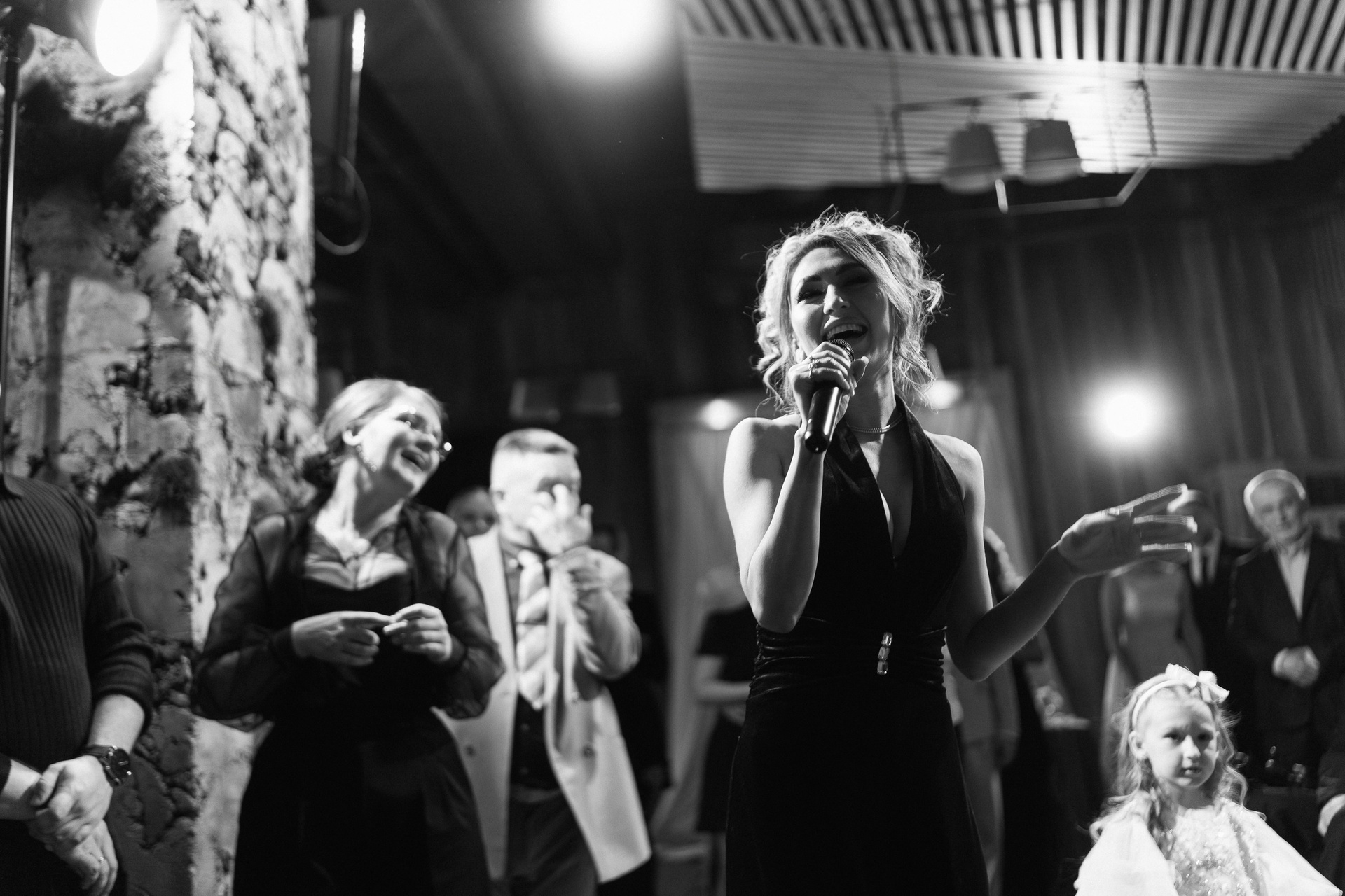 Отдельно стоит отметить свет. Для съёмки был установлен дополнительный постоянный свет, благодаря которому кадры получились более объёмными и кинематографичными. Такой свет помогает сделать репортажные свадебные фотографии более выразительными даже в сложных условиях ресторанного освещения.