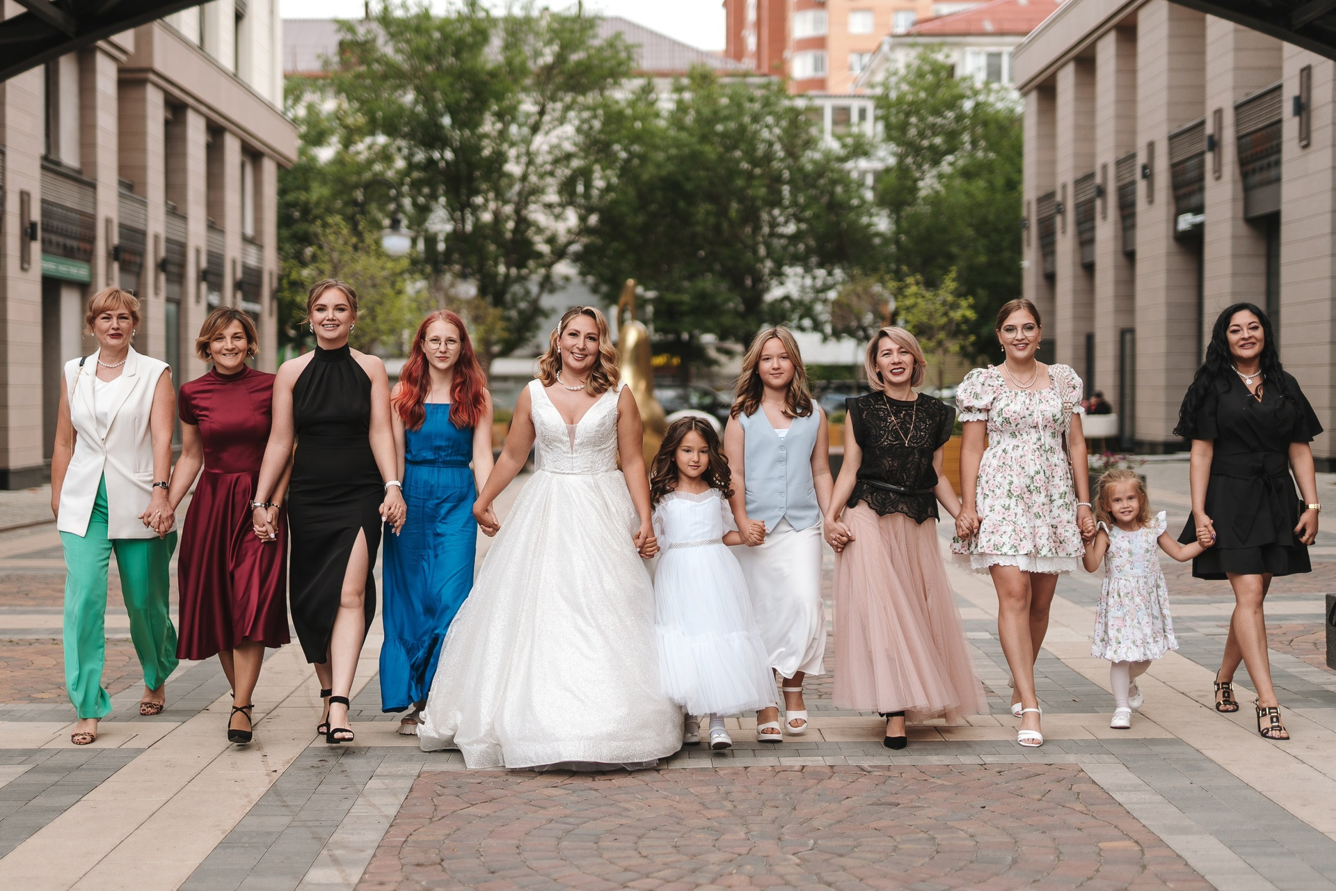 Следующая точка — ЖК Империал, где к съёмке присоединились дочки и мама невесты. Мы сделали небольшую семейную фотосессию, которая добавила серии тепла и разнообразия.