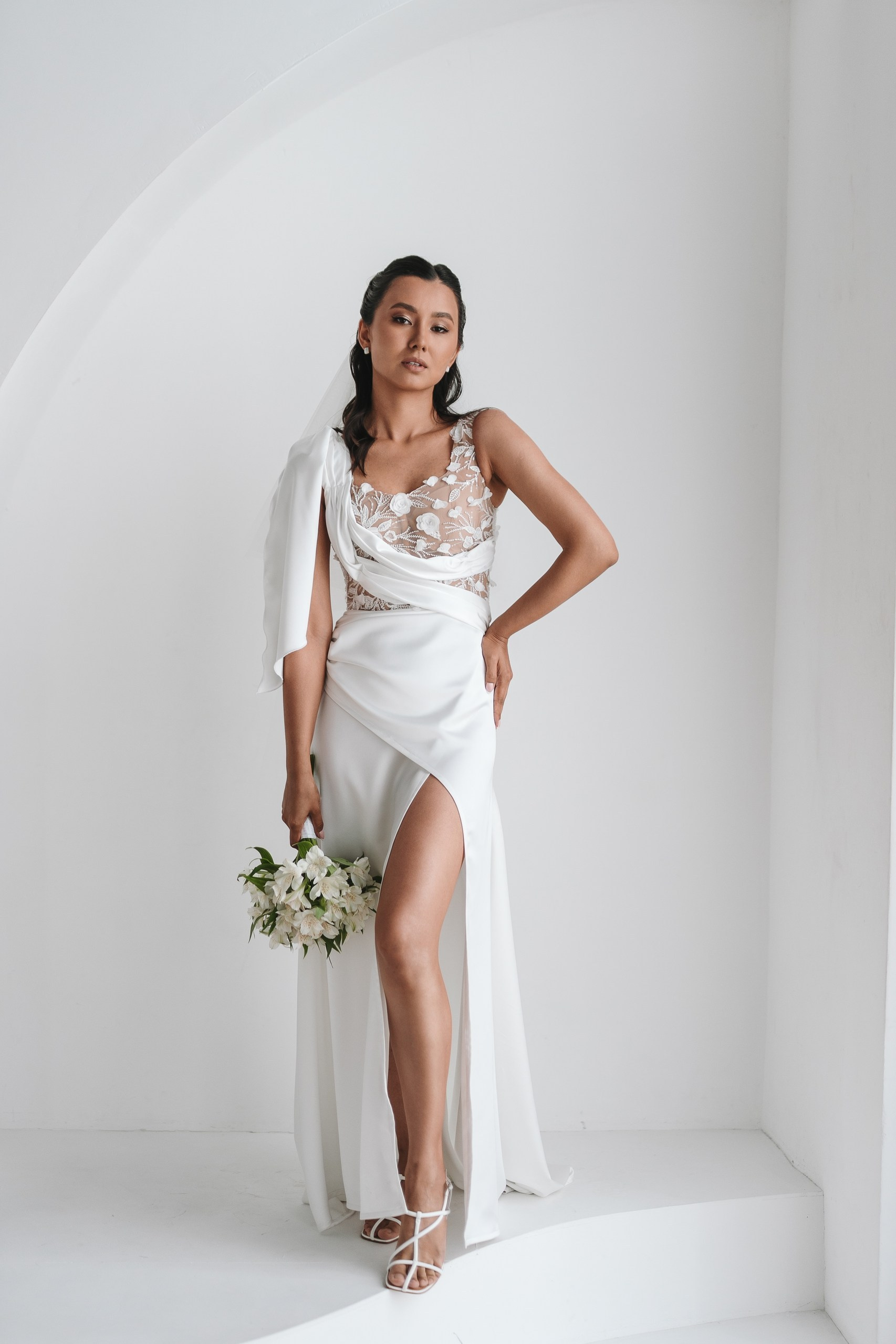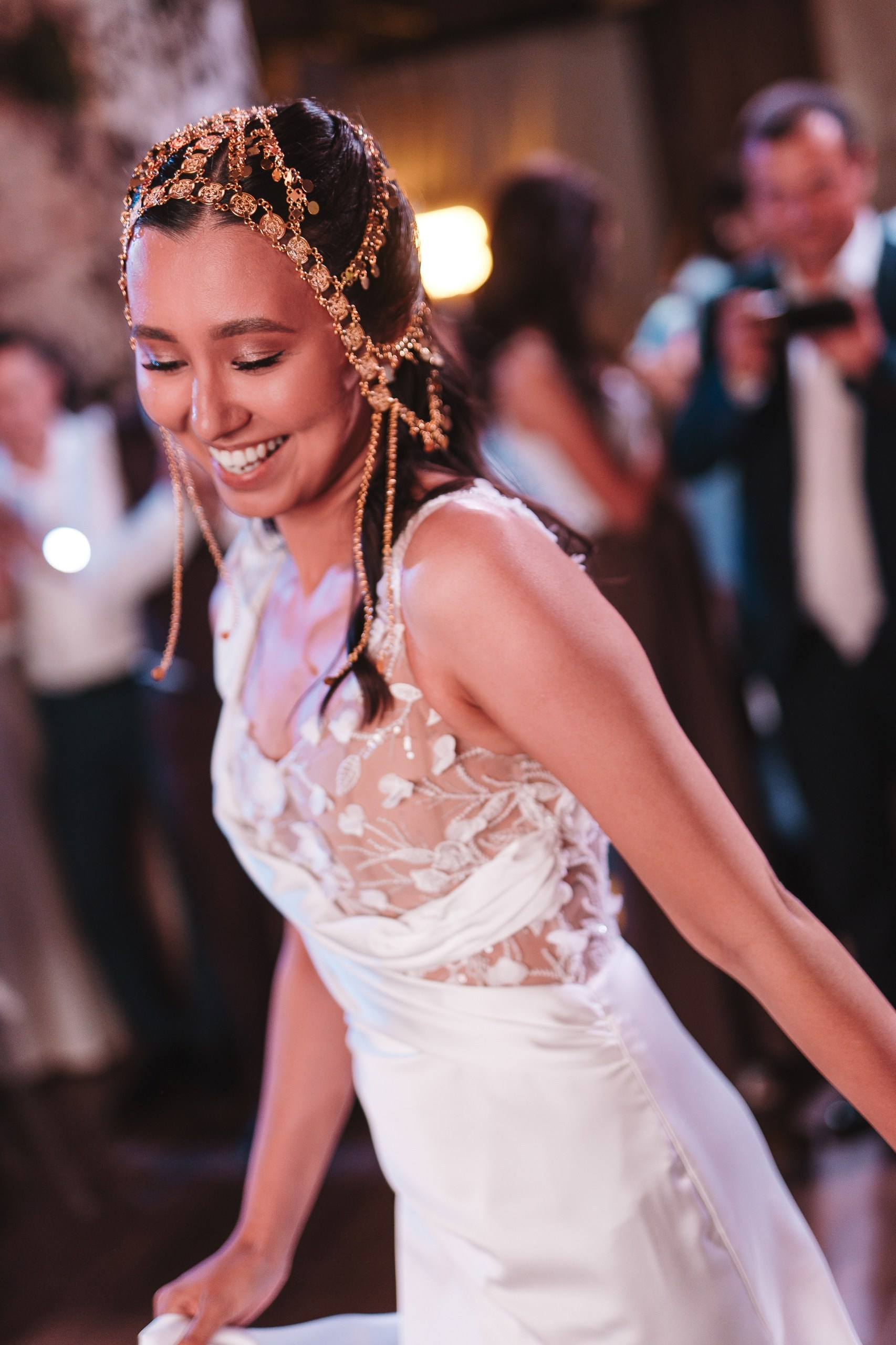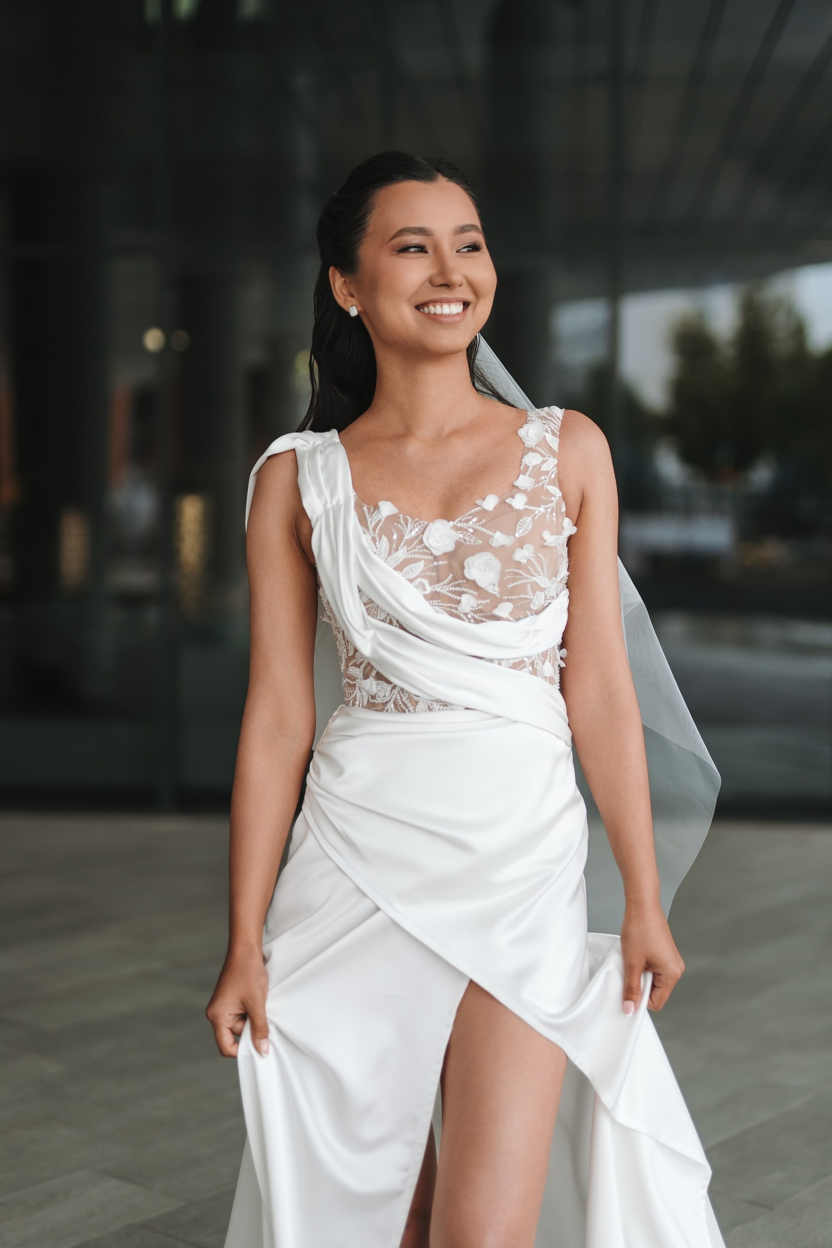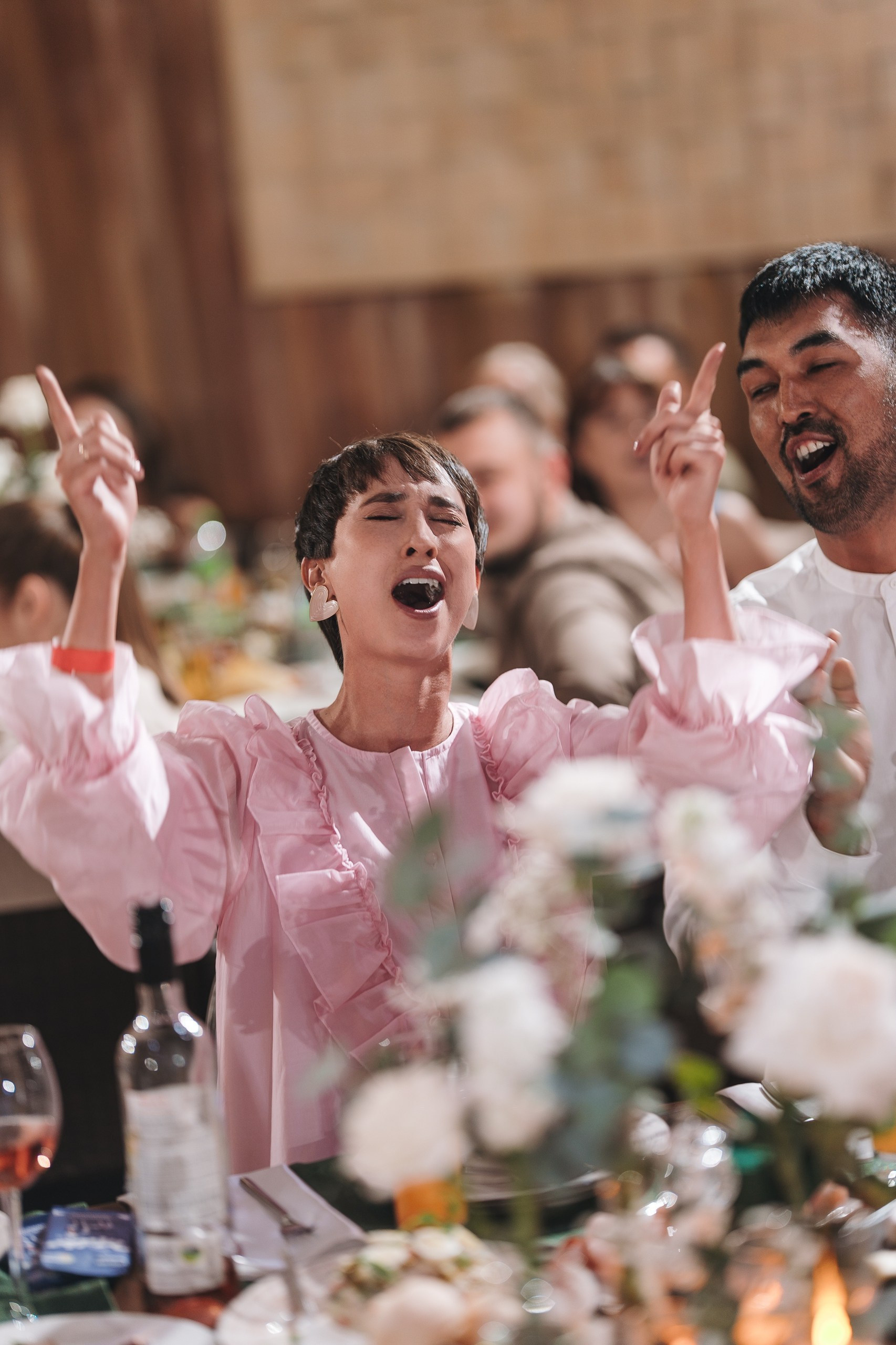 Невеста по ходу вечера сменила образ на более короткое коктейльное платье — это всегда круто работает, добавляет динамики и разнообразия в серию.