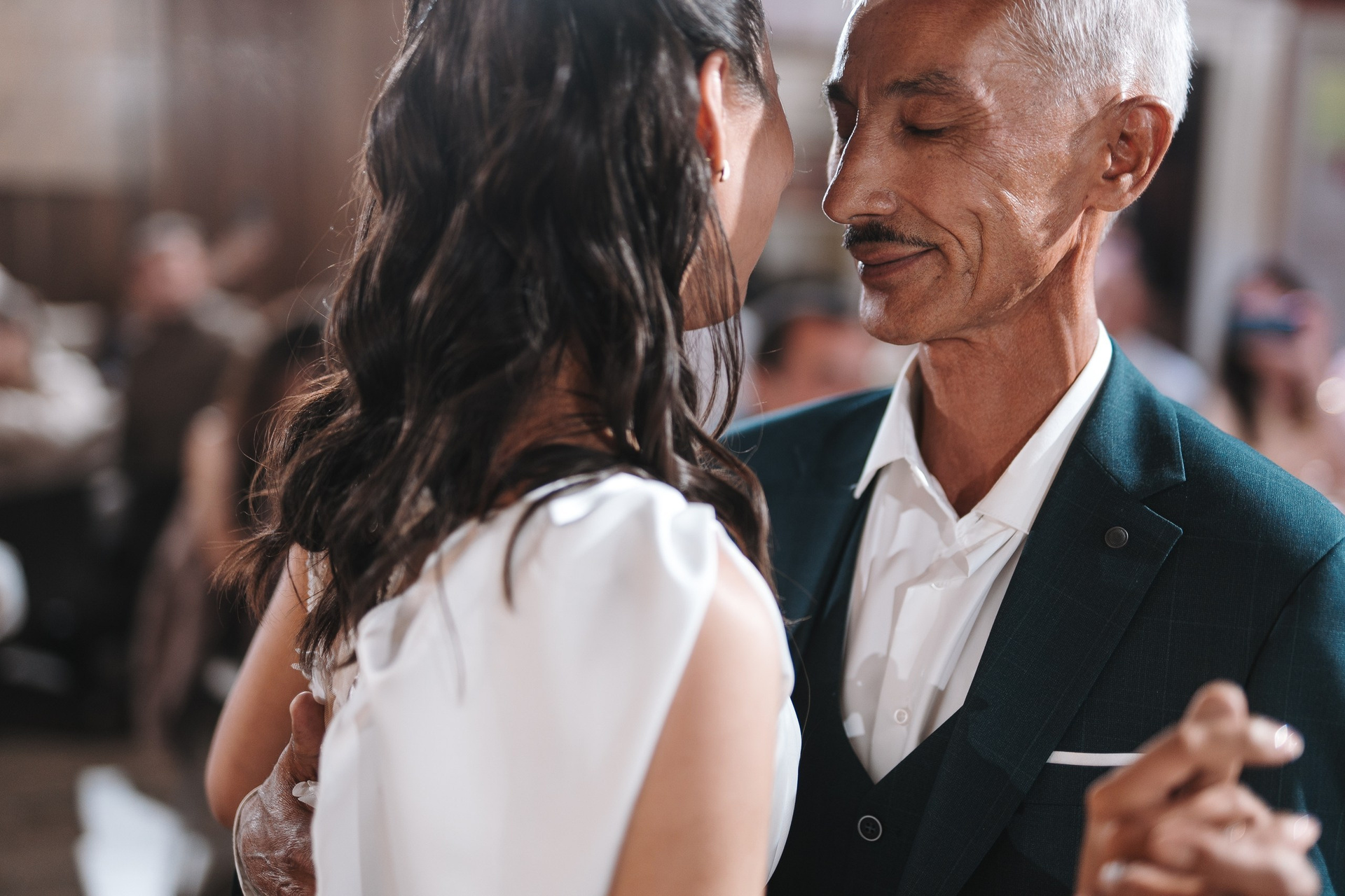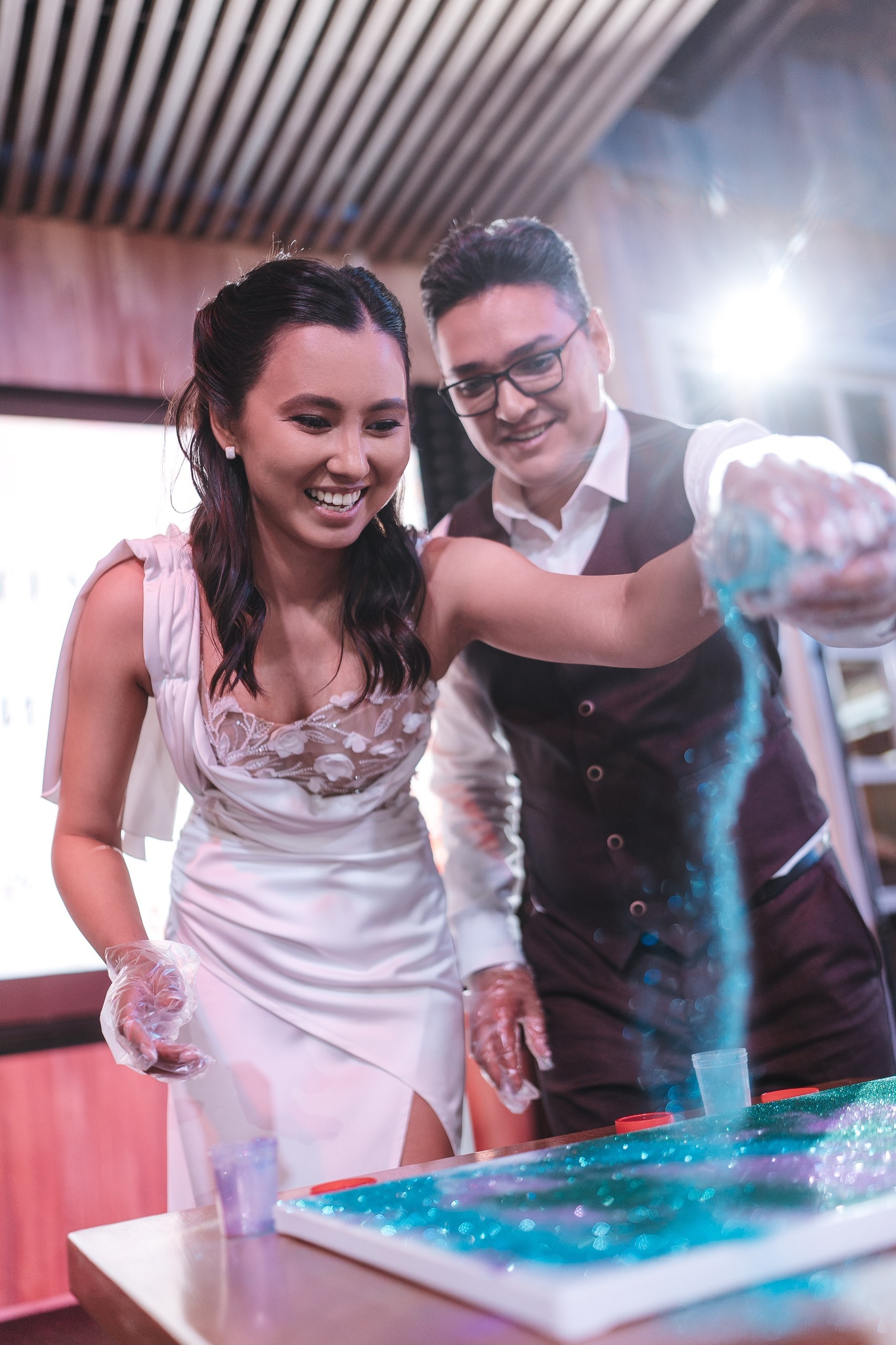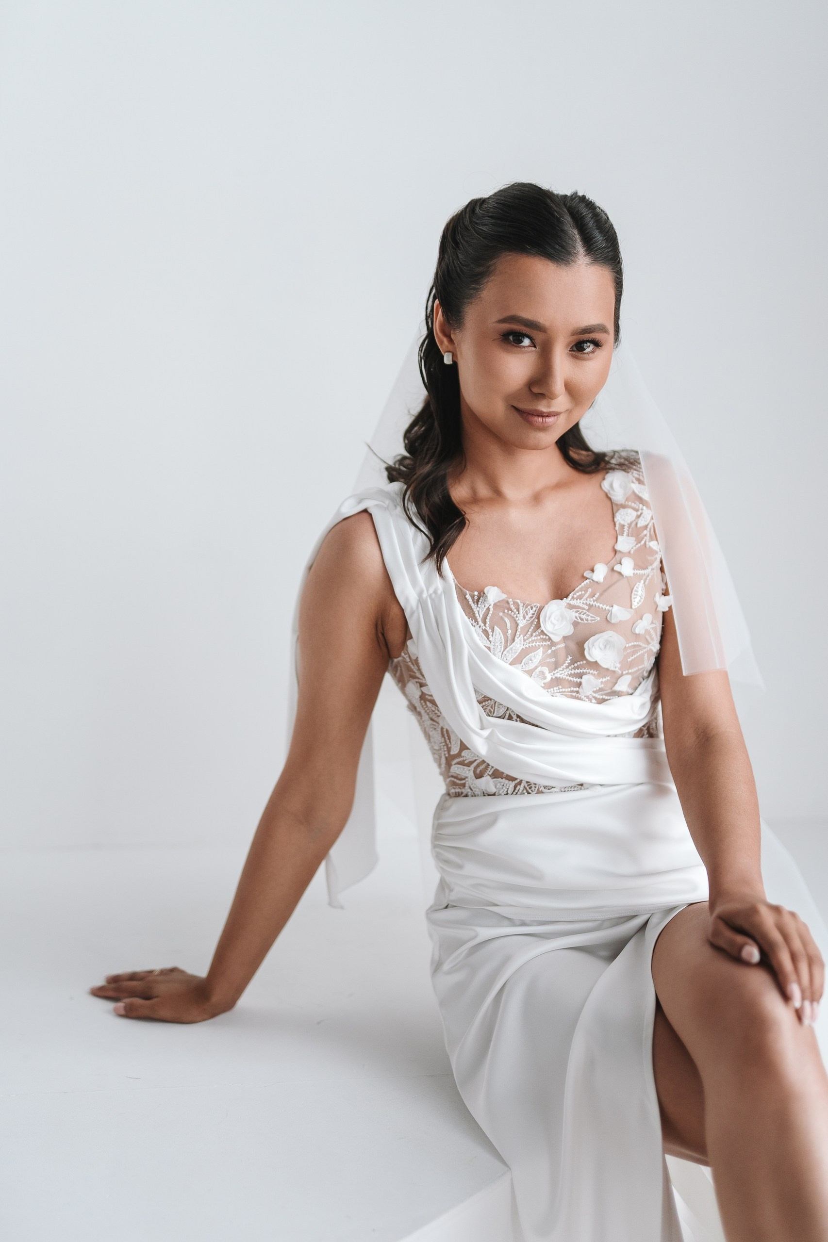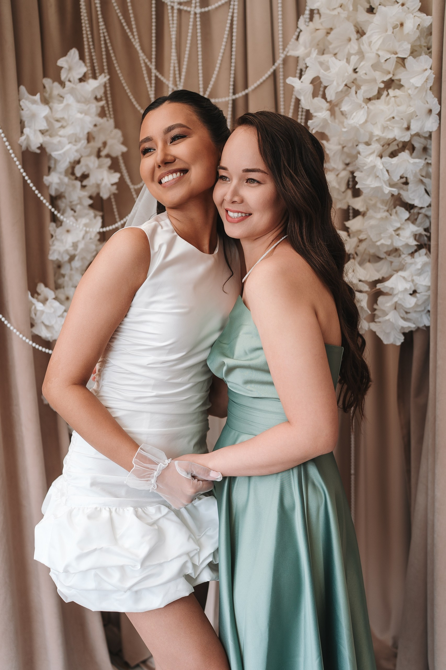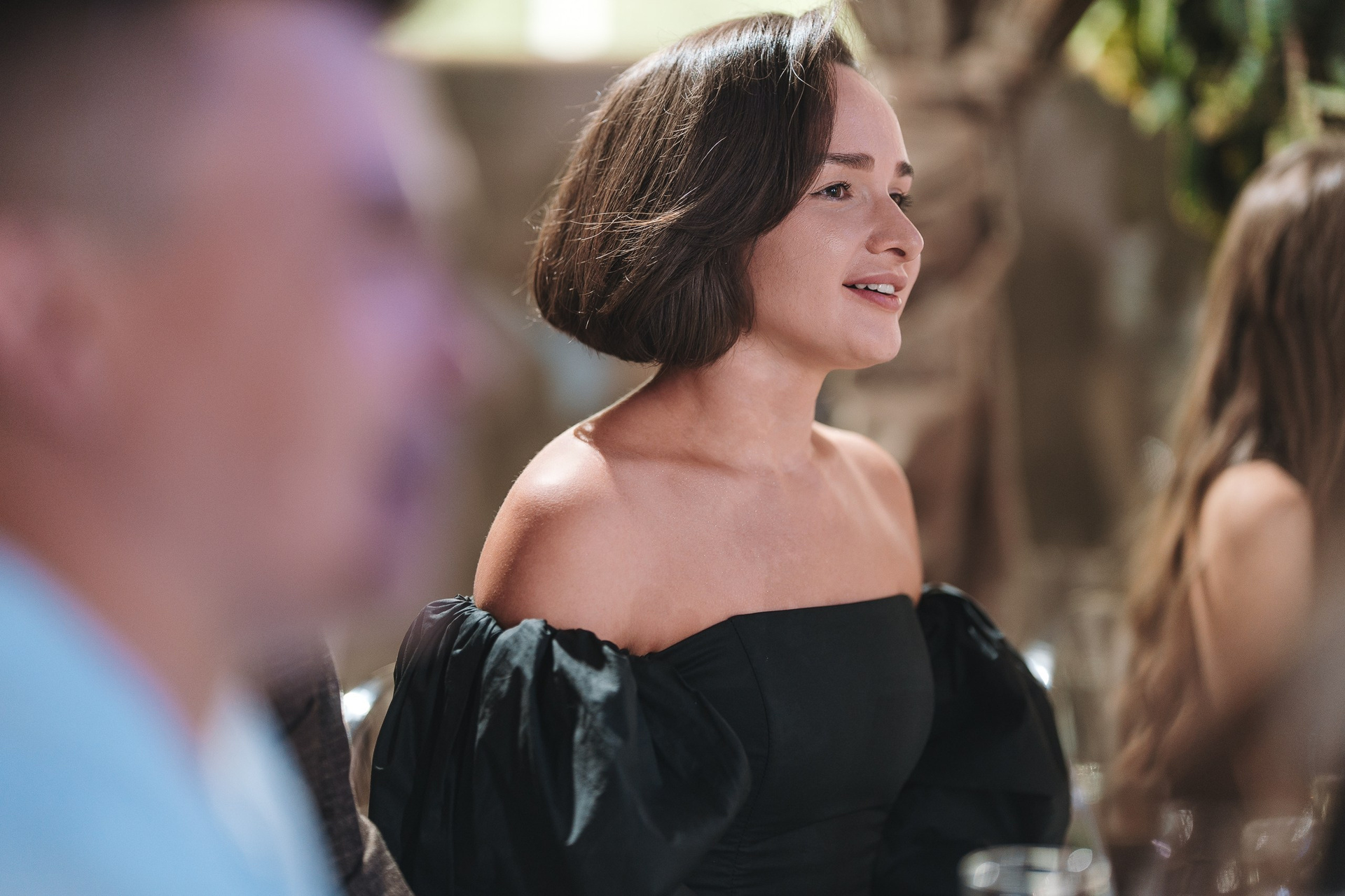 Невеста по ходу вечера сменила образ на более короткое коктейльное платье — это всегда круто работает, добавляет динамики и разнообразия в серию.