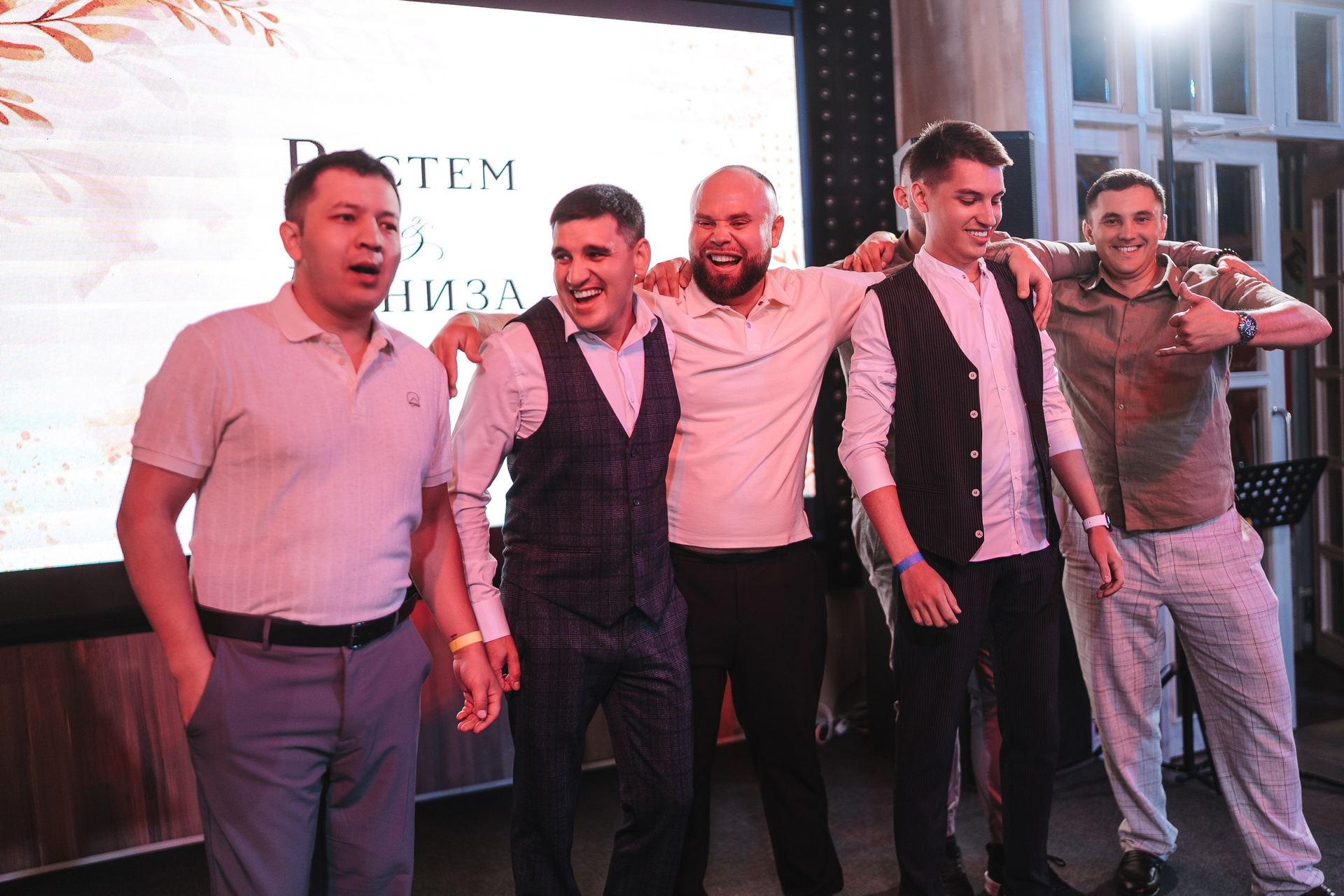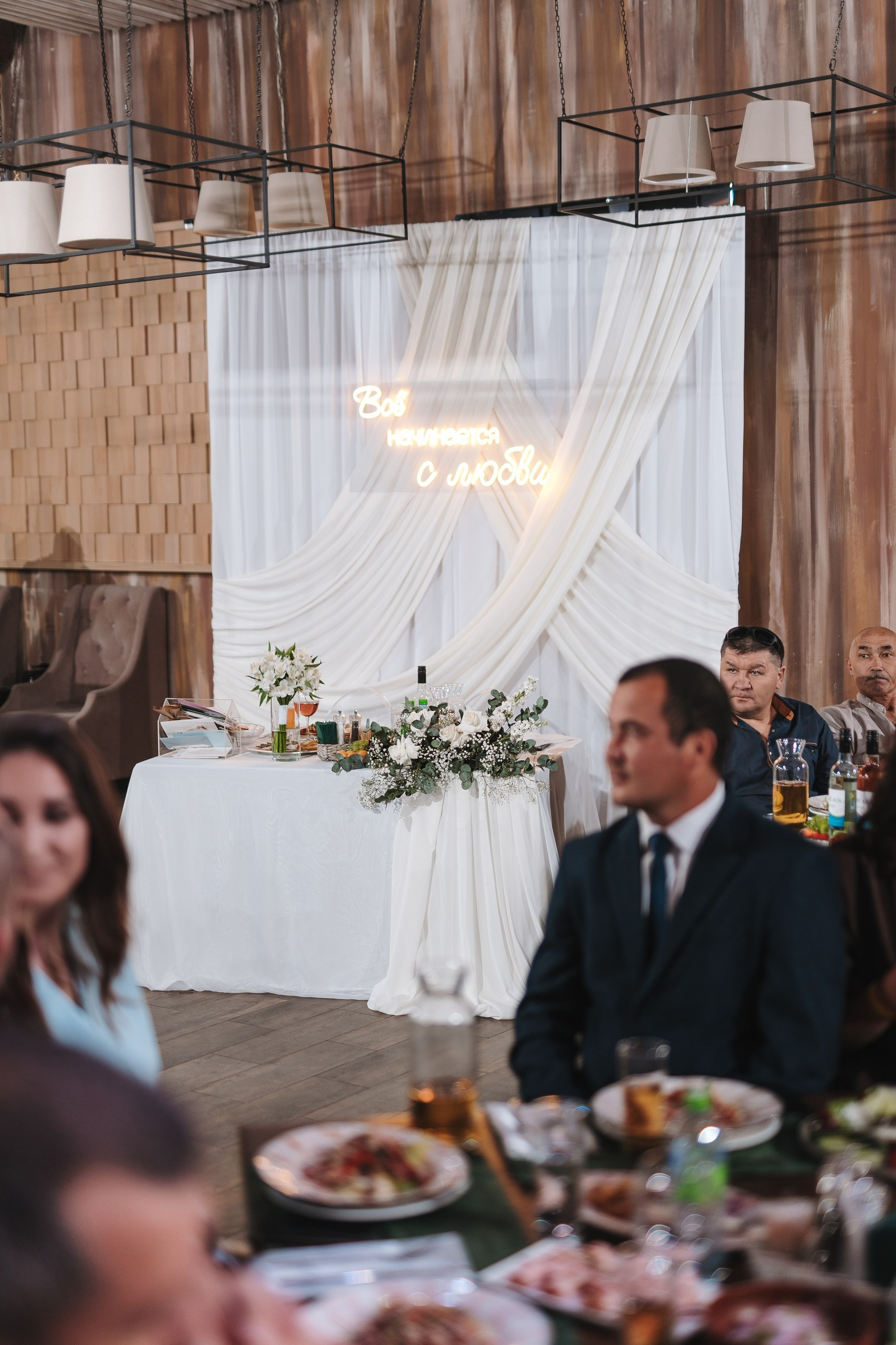 Дальше — велком-зона и банкет в ресторане «Пастернак». Камерная свадьба на 40 гостей, очень живая и эмоциональная.