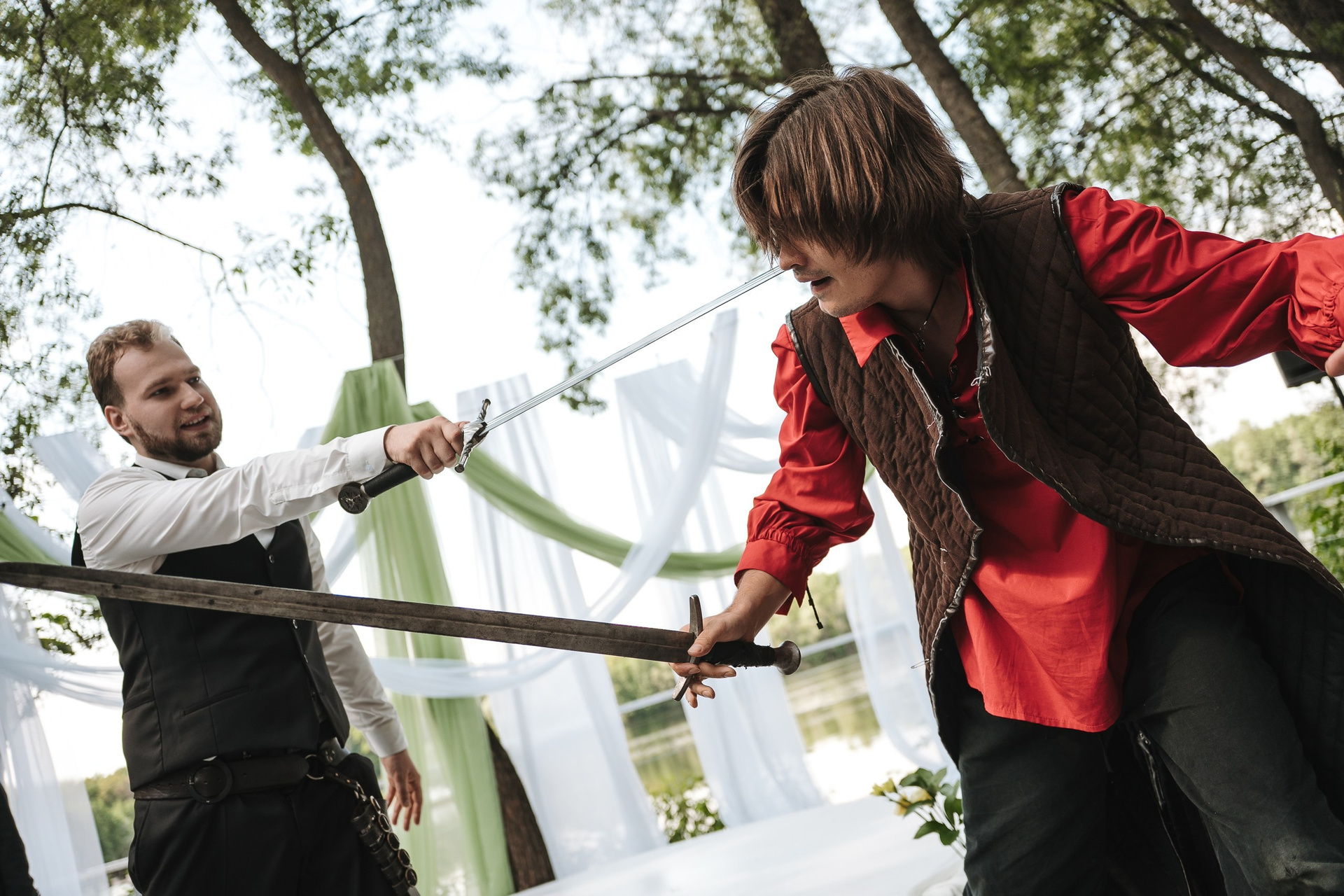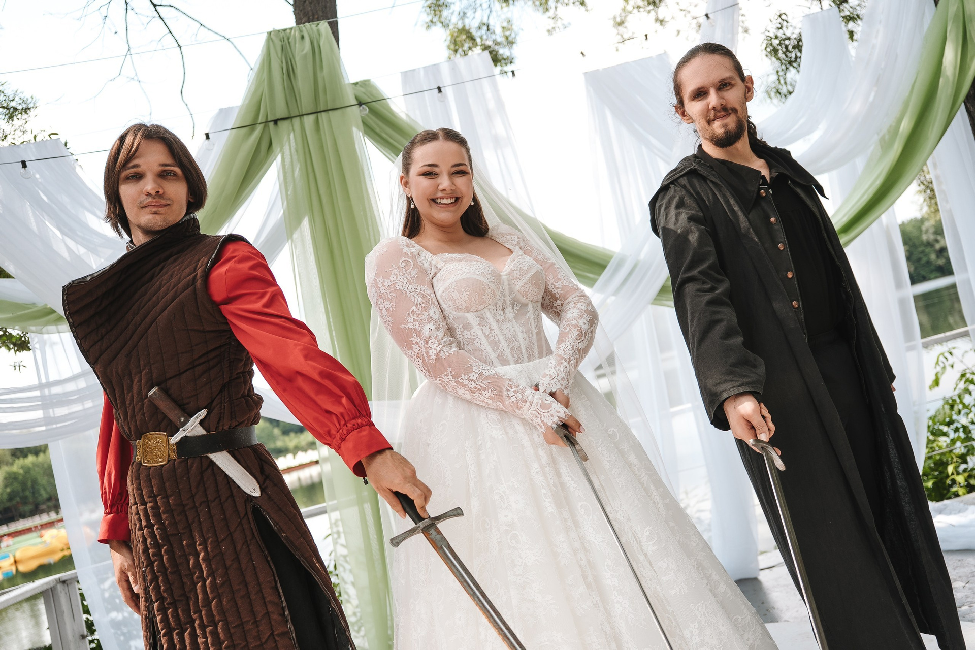 жених вступил в поединок с «разбойниками» (отсылка к игре Ведьмак), а кольца выносила лошадь — очень эффектно и нестандартно.