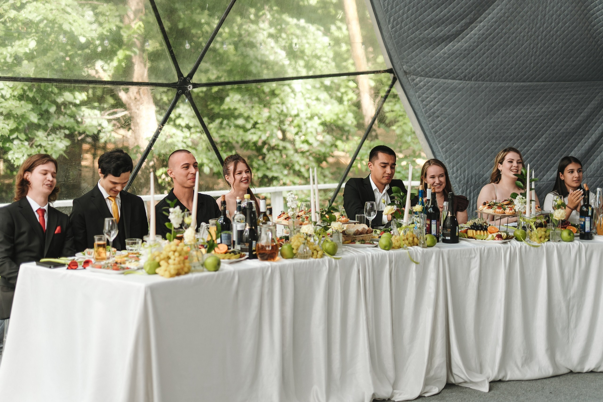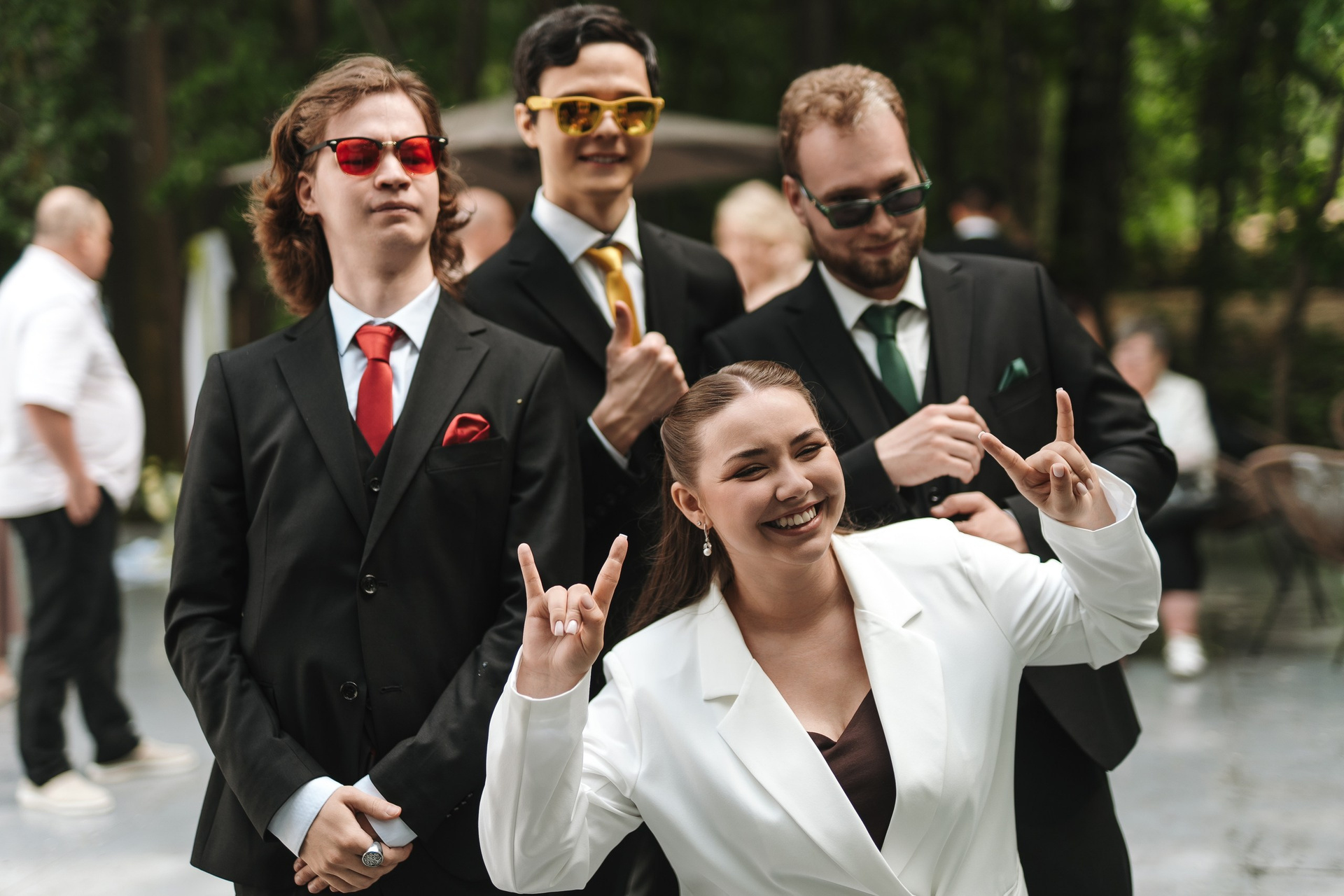 После этого — классическая церемония и общие фотографии с гостями.