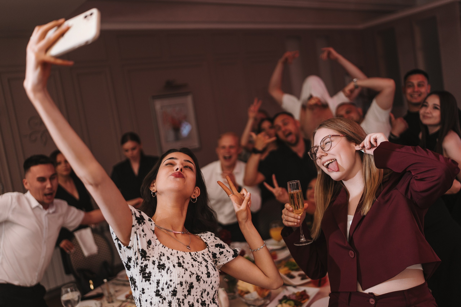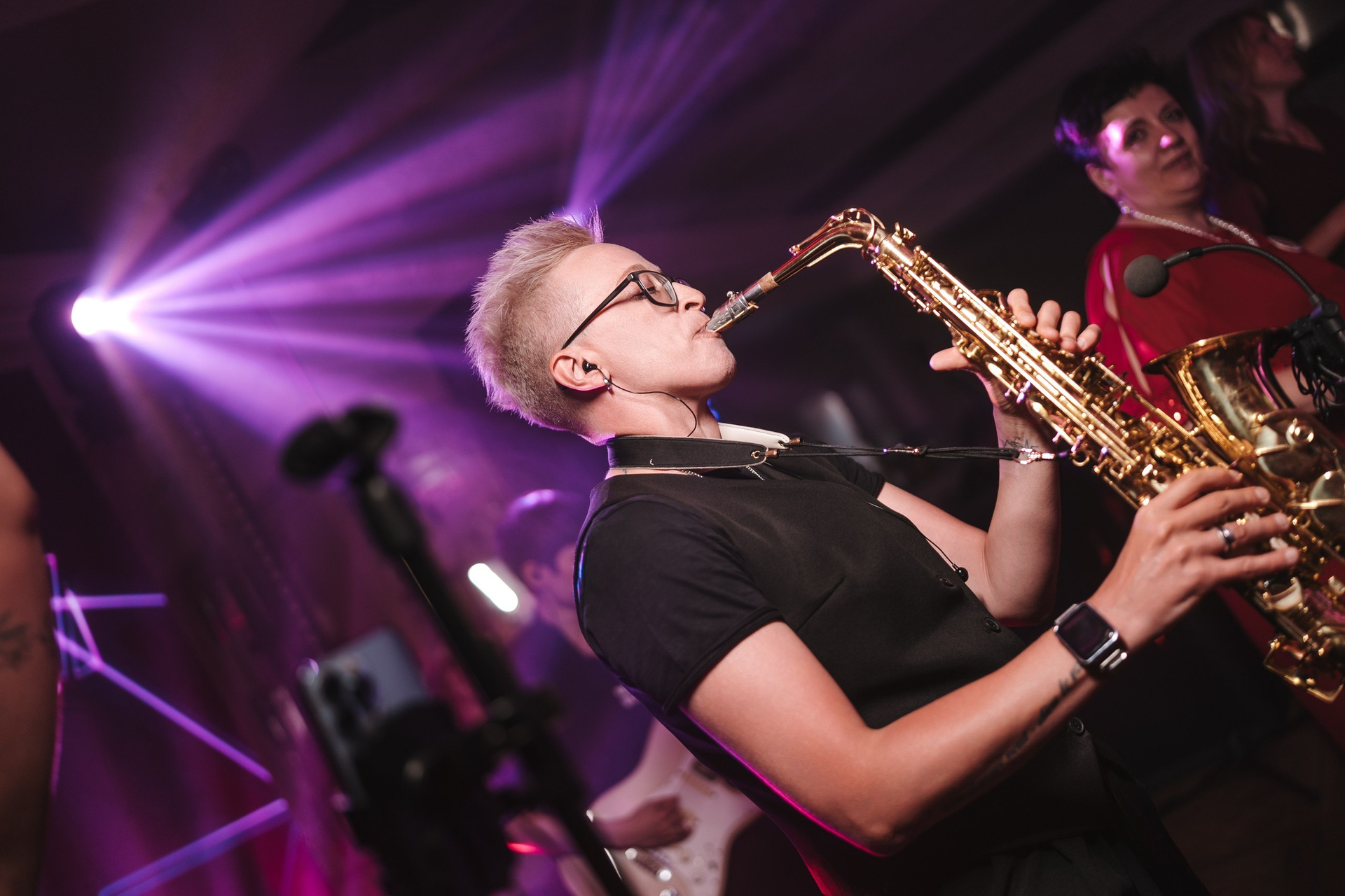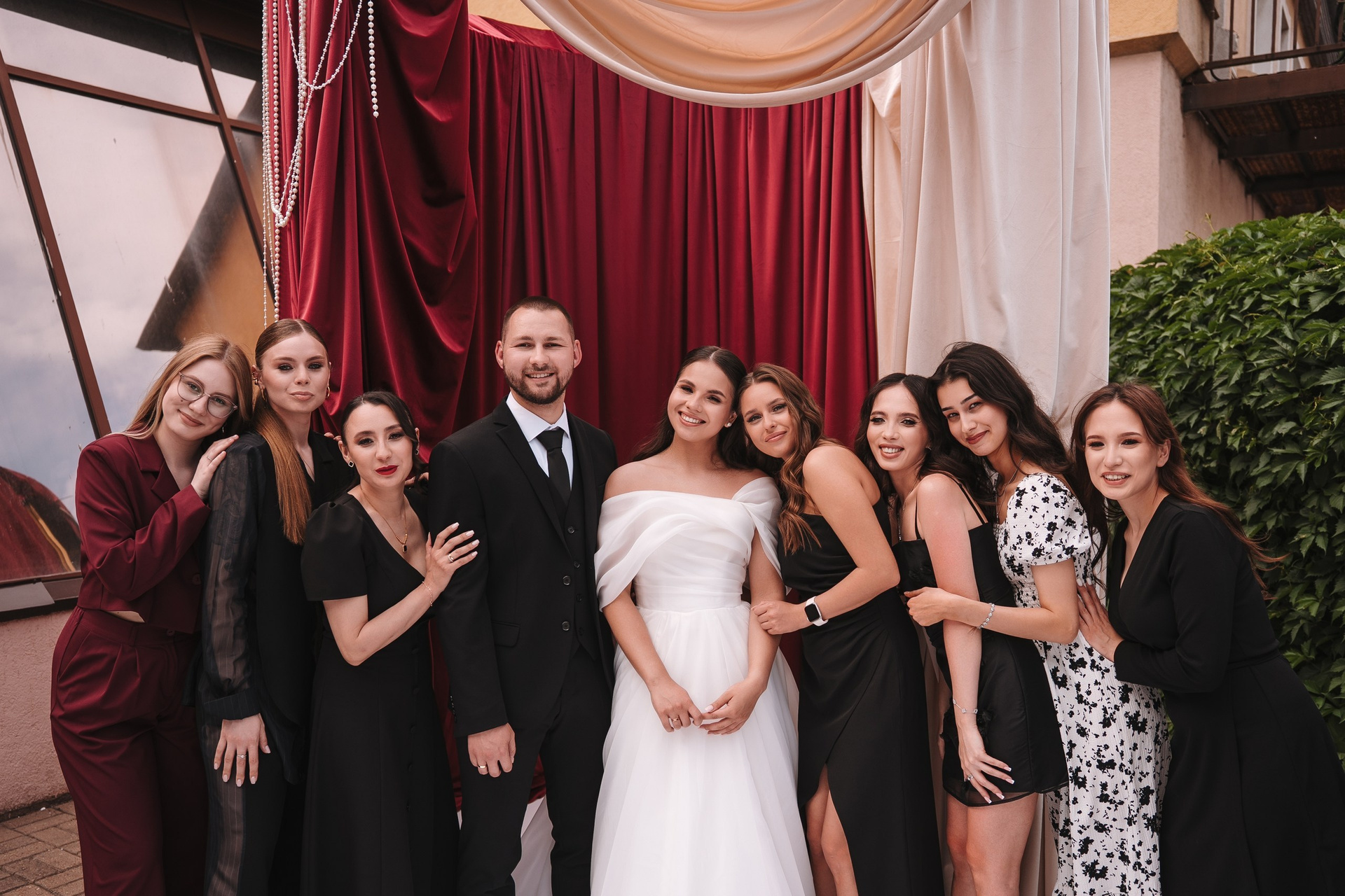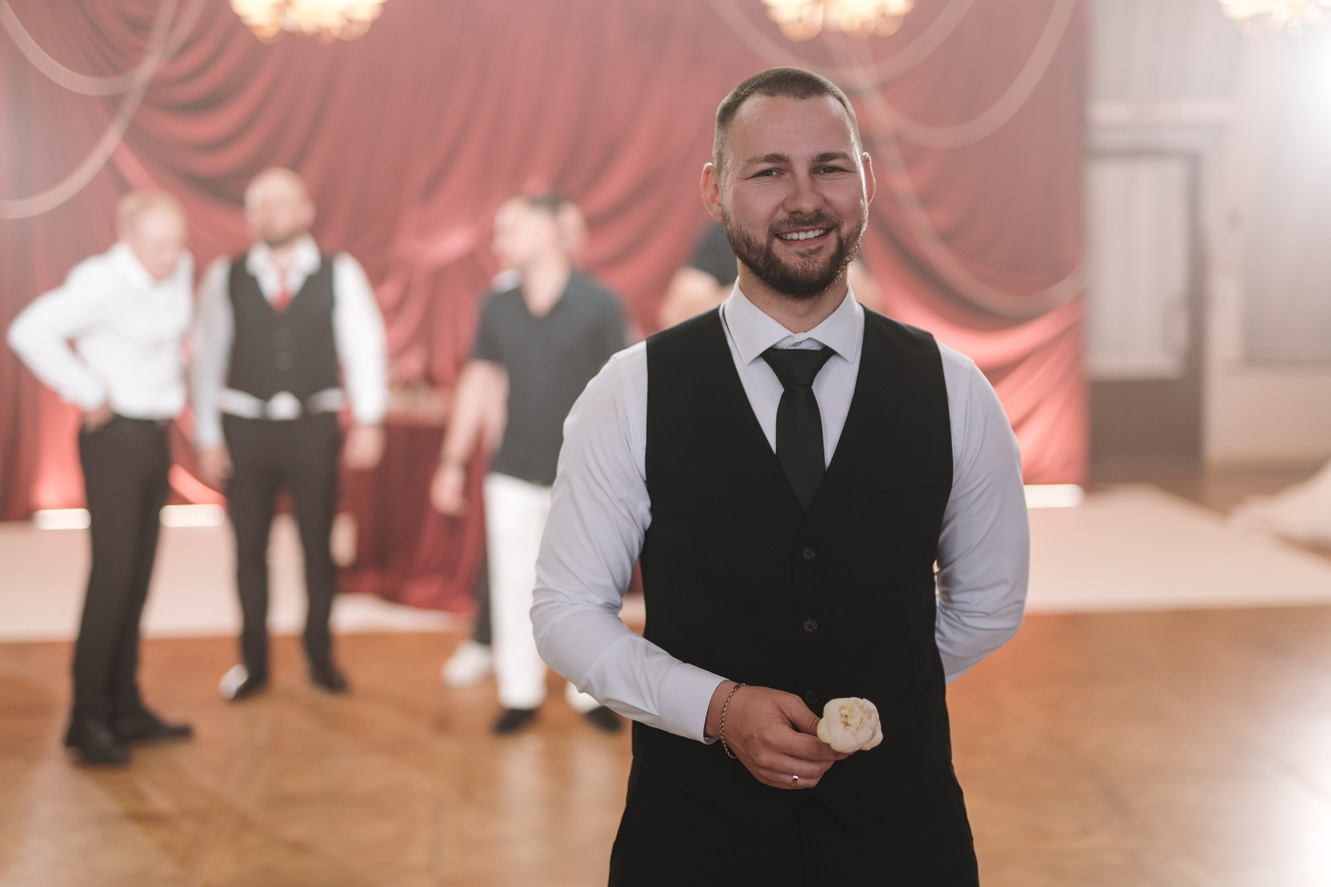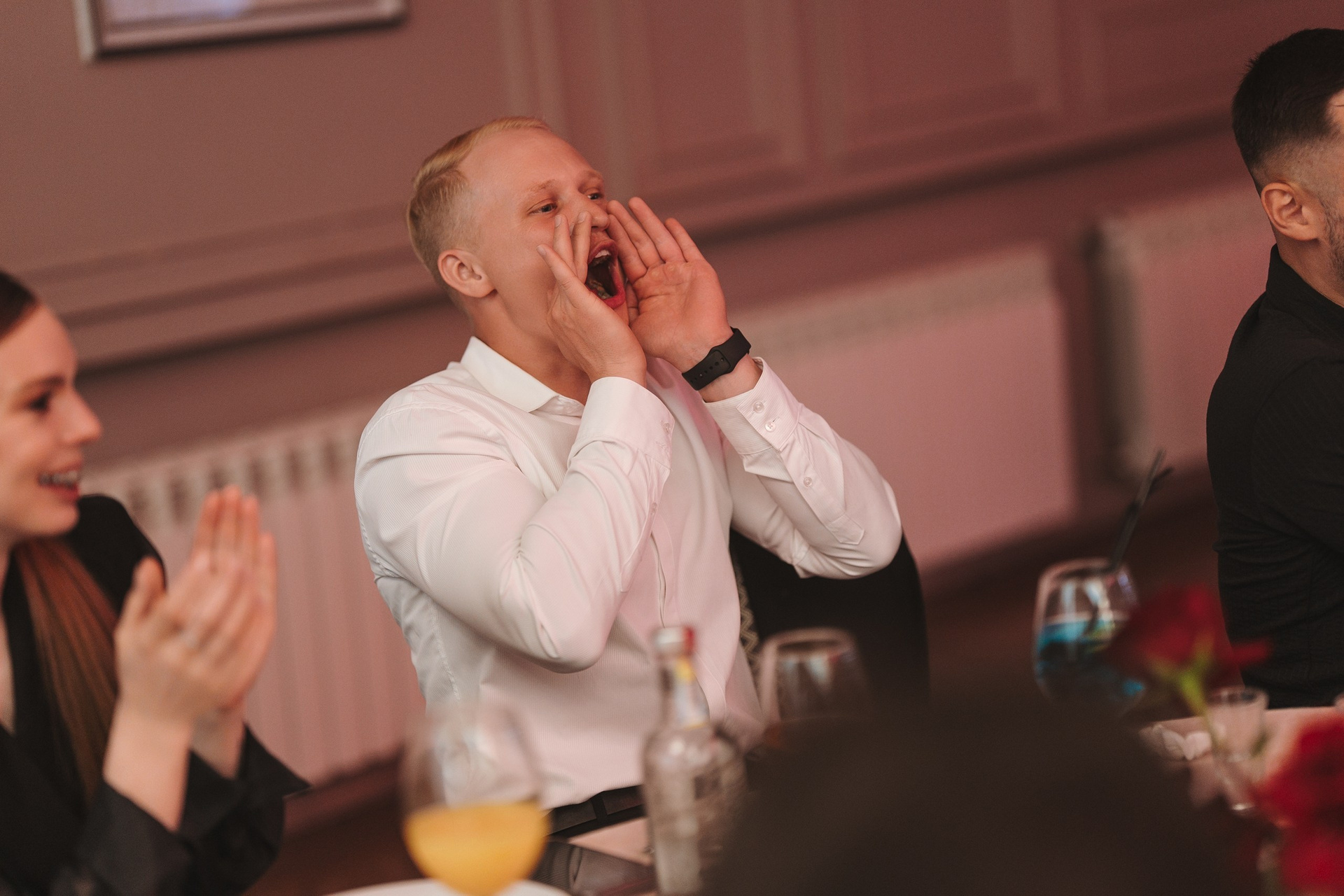 После церемонии мы поснимались с гостями и переместились в зал. Банкетный зал выглядел шикарно: тканевый бордовый декор, профессиональный свет, звук и экран от Korkesh — уровень сразу чувствовался. Вёл вечер Артём Ямбаев, всё шло динамично: тосты, традиции, конкурсы, танцы и постоянная движуха. За видео отвечал Салават Байдавлетов, он же Xroke Prod.