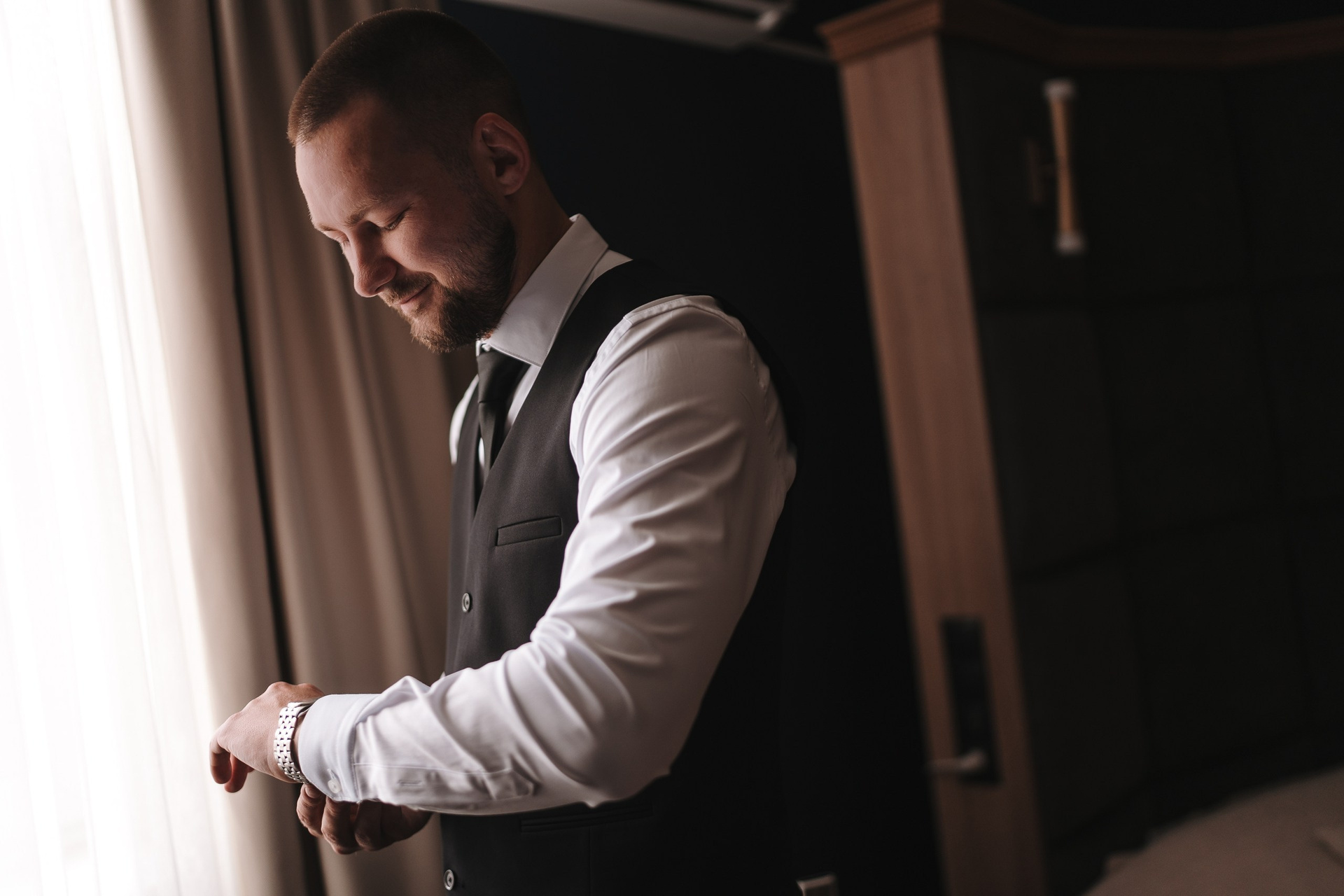12 июня 2025 года — Стерлитамак, жара под +35 и очень красивая, живая свадьба Владислава и Элины. День начался со сборов в гостинице при Гранд Отель Восток. Сначала спокойно поснимали жениха, затем — момент, который я особенно люблю: жених уже в костюме, невеста в лёгком пенюаре, без суеты, с шампанским. У ребят был ещё старый цифровой фотоаппарат — они снимали друг друга параллельно, и это добавило очень тёплой, личной атмосферы.