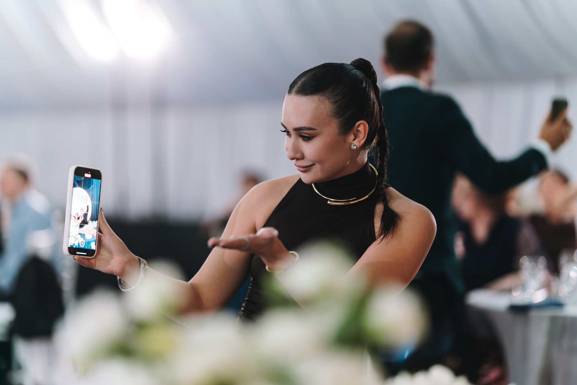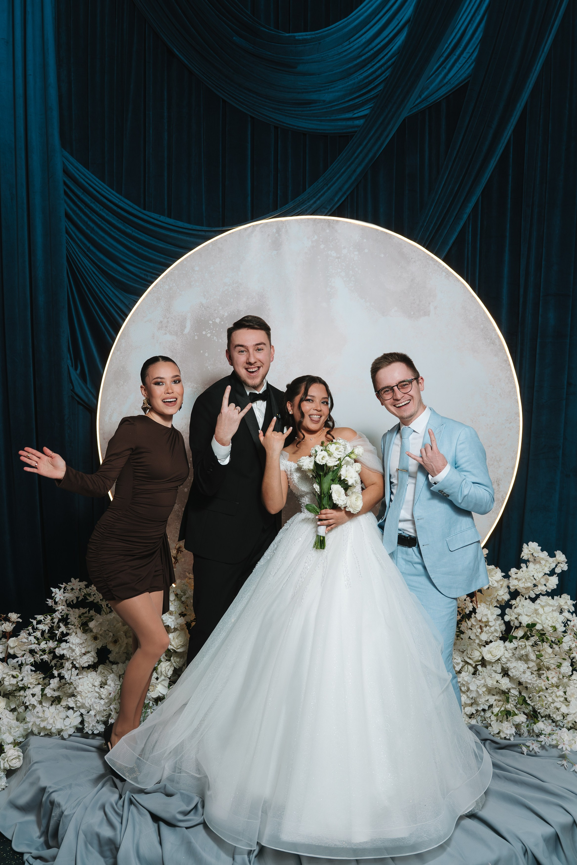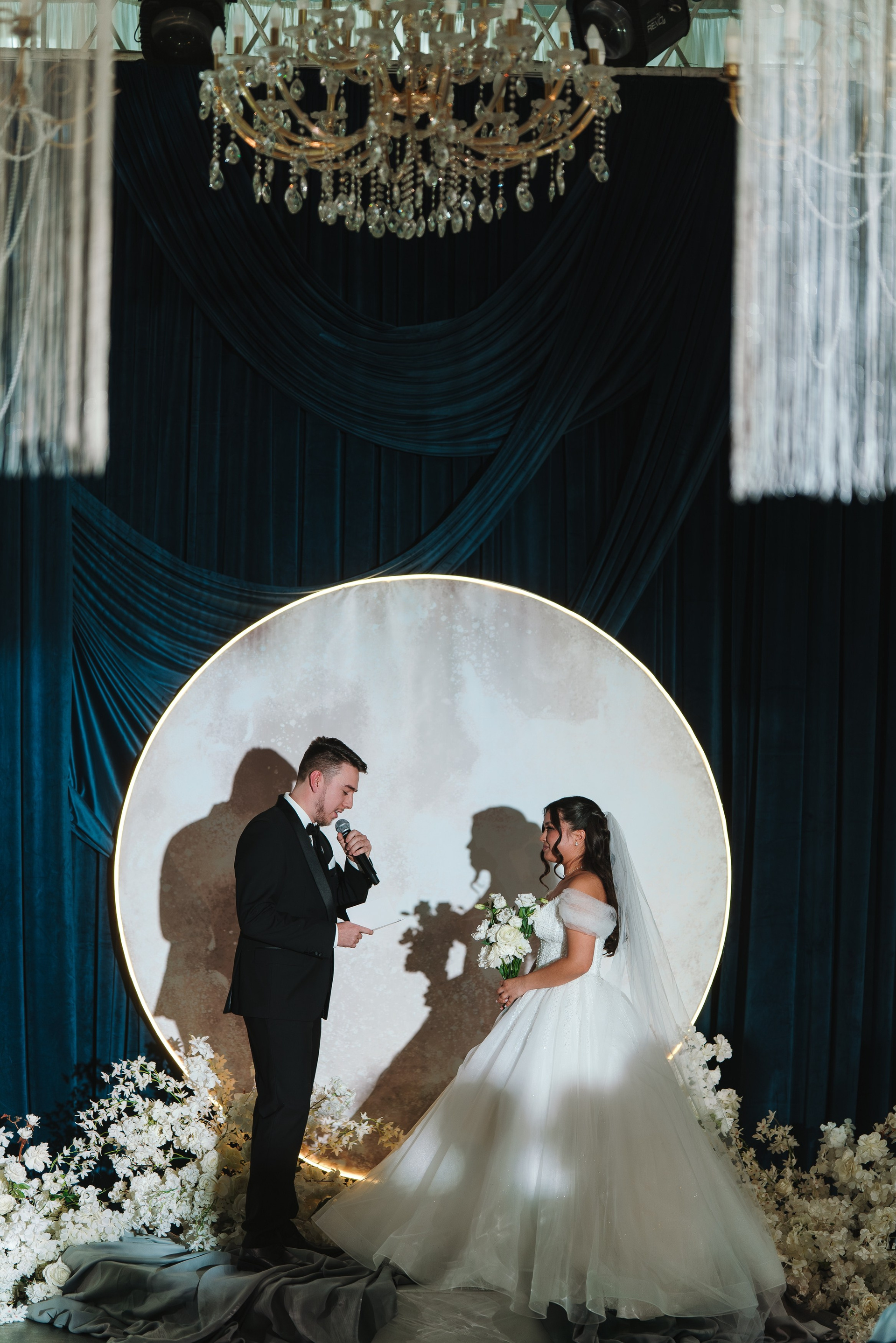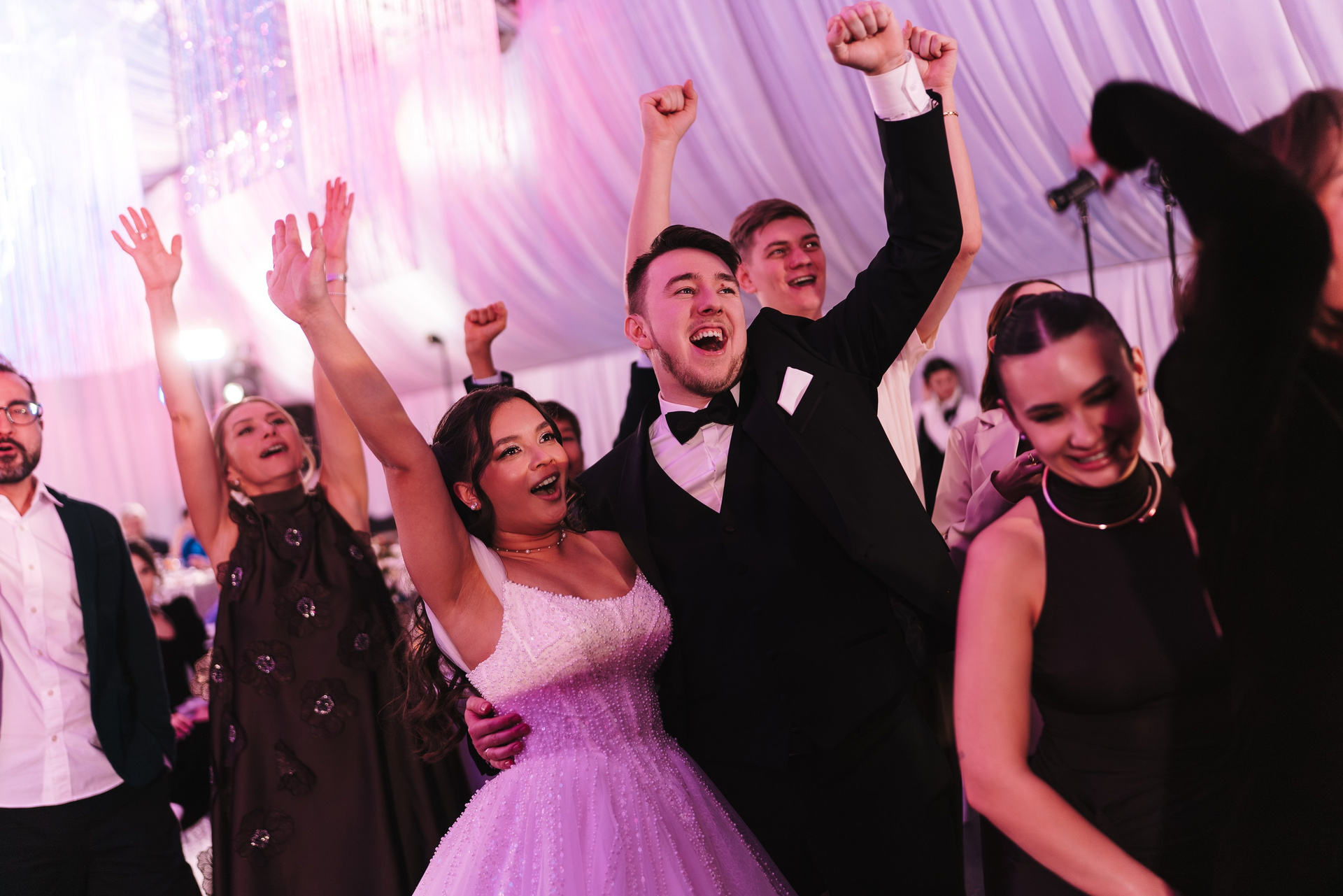 Первый танец молодых получился особенно эффектным: густой дым, аккуратно выстроенный свет, насыщенные цвета — всё выглядело очень кинематографично. Было много тостов, интерактивов, танцев и хорошей движухи, но без хаоса. Световая работа на протяжении всего вечера держала уровень, зал смотрелся дорого и цельно.